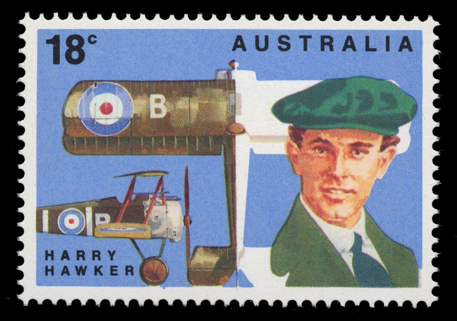 1978 (SG.658 var.) 18c Harry Hawker, a single stamp with "yellow and black" printing misplaced variety [BW: 790c]