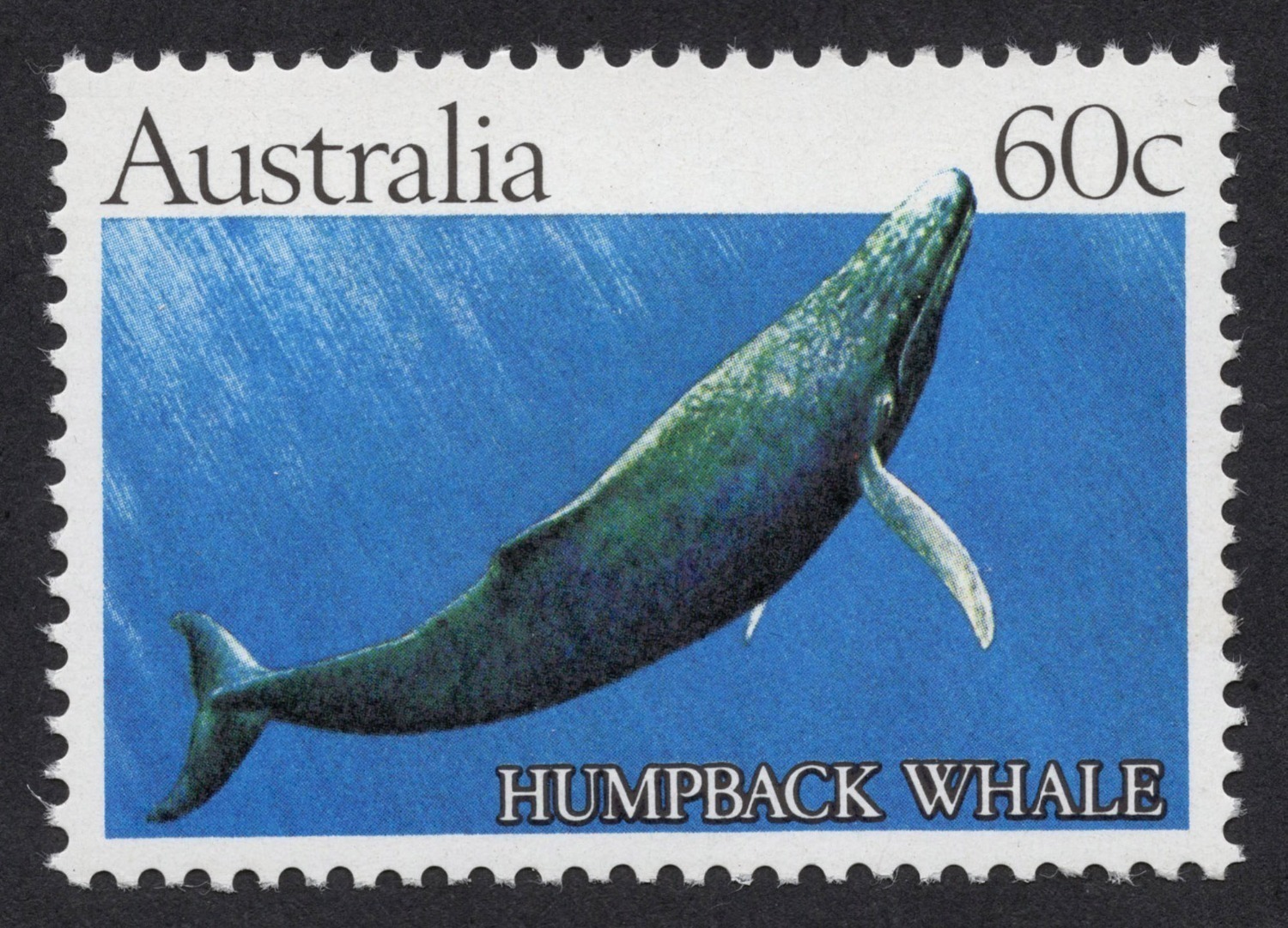 1981 (SG.841a) 60c Humpback Whale with solid blue backgroud (from the Trial Printing); a marginal single MUH, together with a