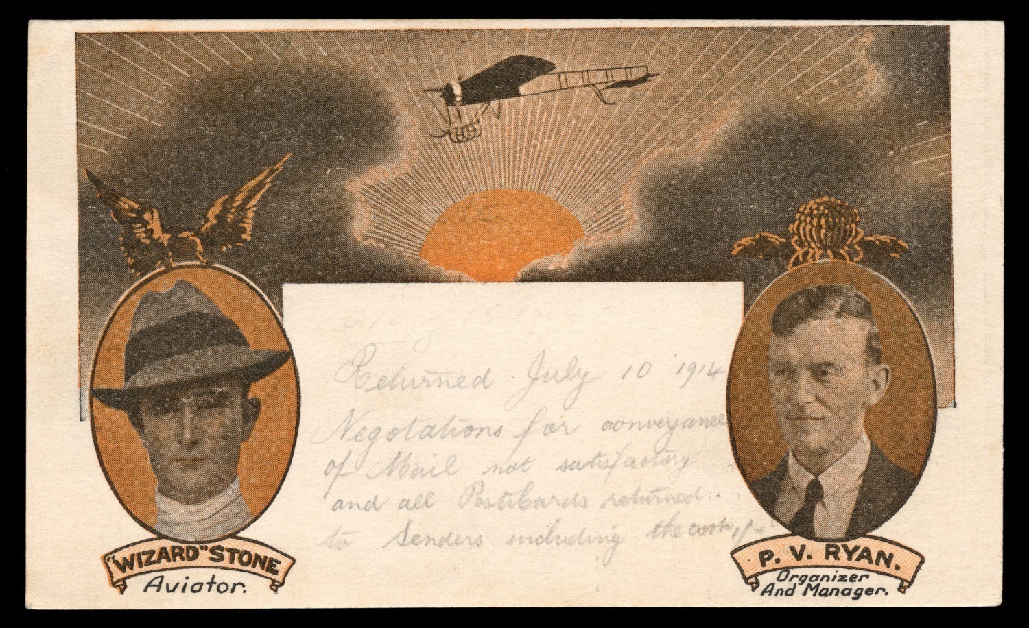 "Wizard" Stone; with 1d adhesive and Sydney address; manuscript notation in message panel "Returned July 10, 1914. Negotiations for conveyance of Mail not satisfactory and all Postcards returned to Senders including the cost