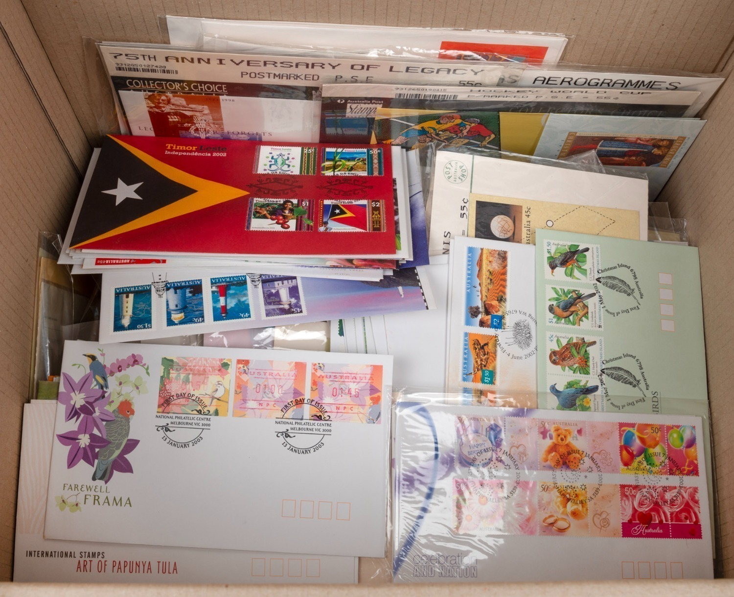 A box containing mainly c. 1990s-2000s first day covers (hundreds), in addition to a quantity of prepaid postcards and