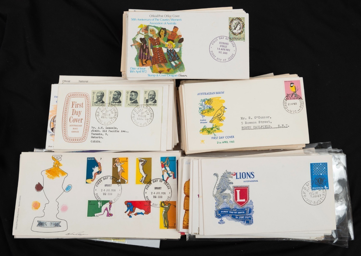 An accumulation of Australian FDCs and Special postmark covers; noted some rarely seen 1956 Olympics covers, etc. (qty). (Image 1)