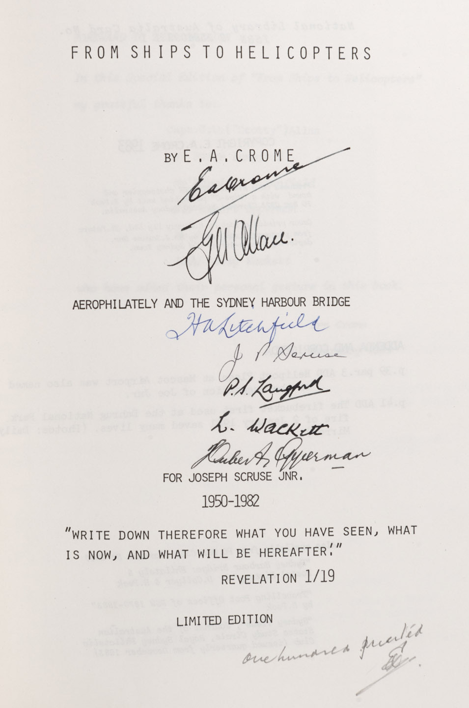 Helicopters" (1984); the second volume with original signatures of G.U. Allan, H.A. Litchfield, L. Wackett, Hubert Opperman and John Scruse. (2). (Image 1)