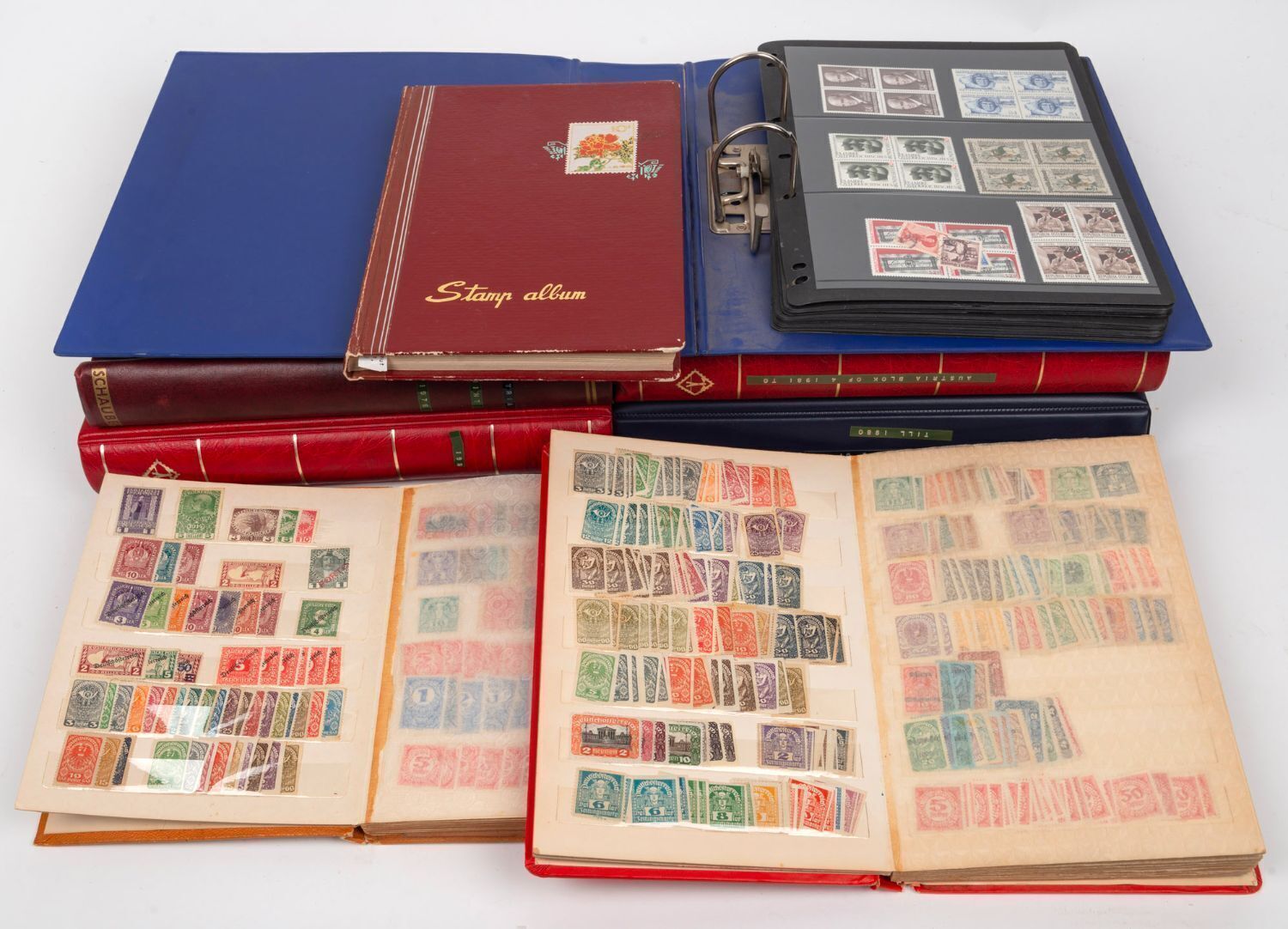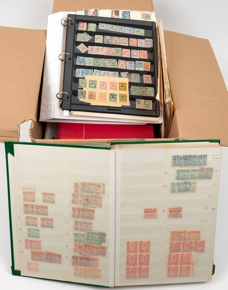 AUSTRALIA and WORLD stamps in ten large albums plus various other items. Noted G.B. New Zealand, PNG, South Africa, USA, etc.