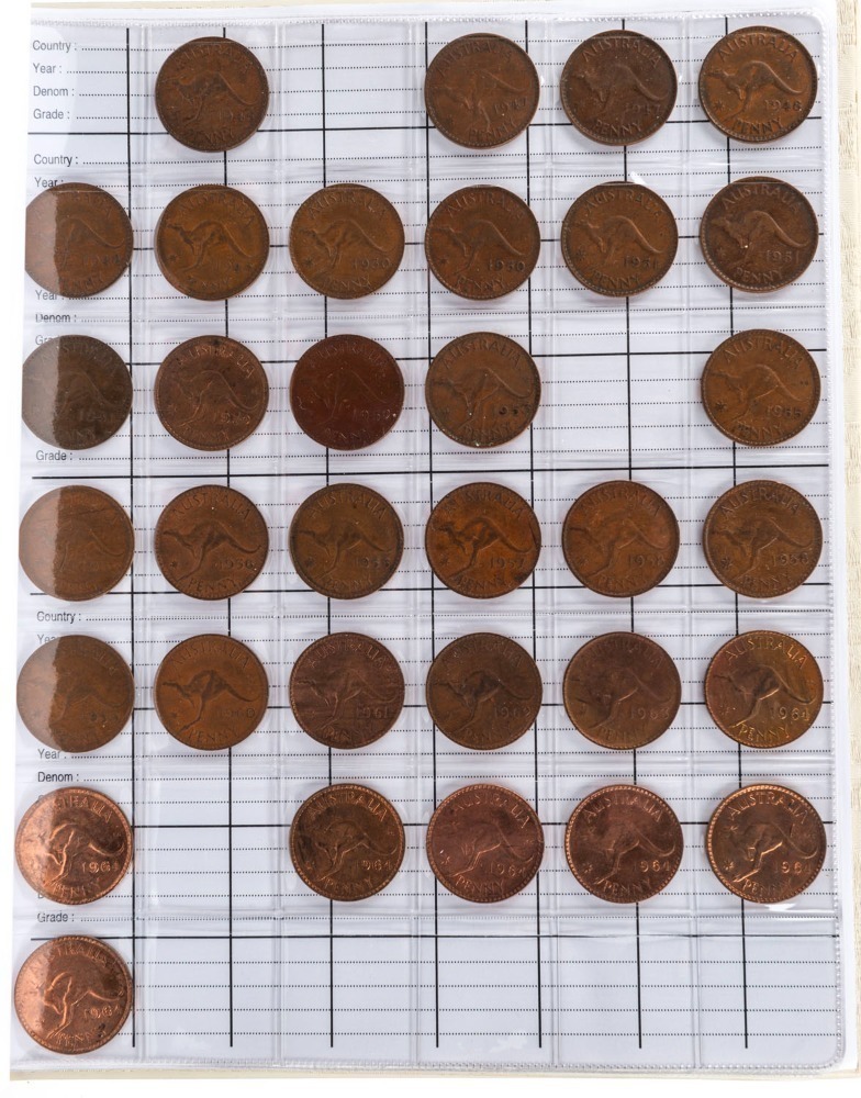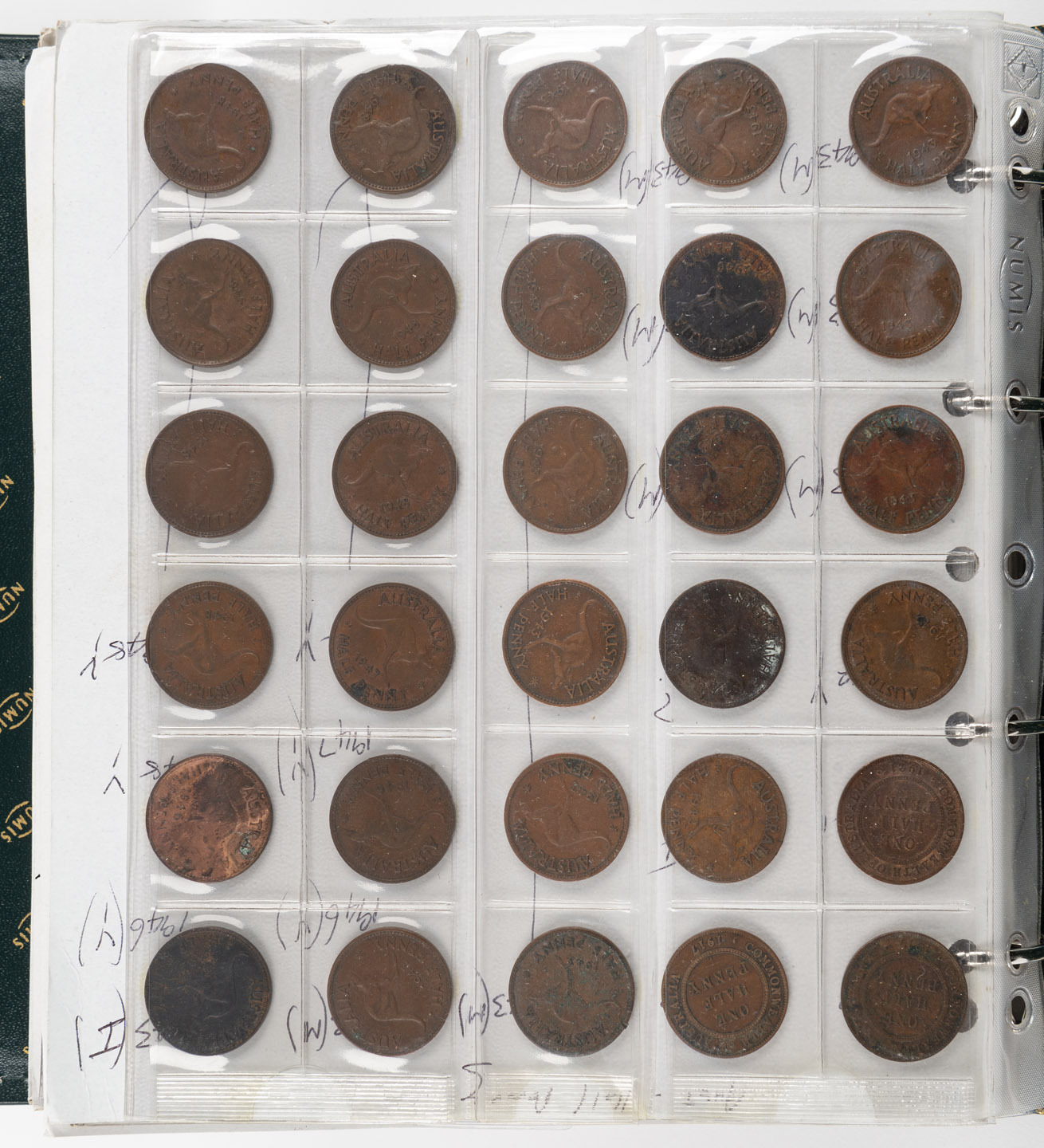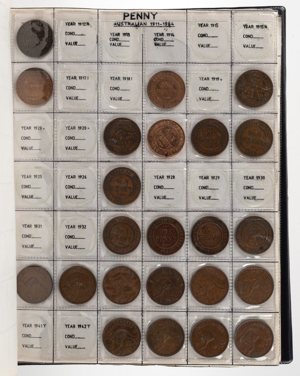 1910 - 1963 collection in an album, with Half-pennies (42), Pennies (54), Threepences (42), Sixpences (28), Shillings (18),