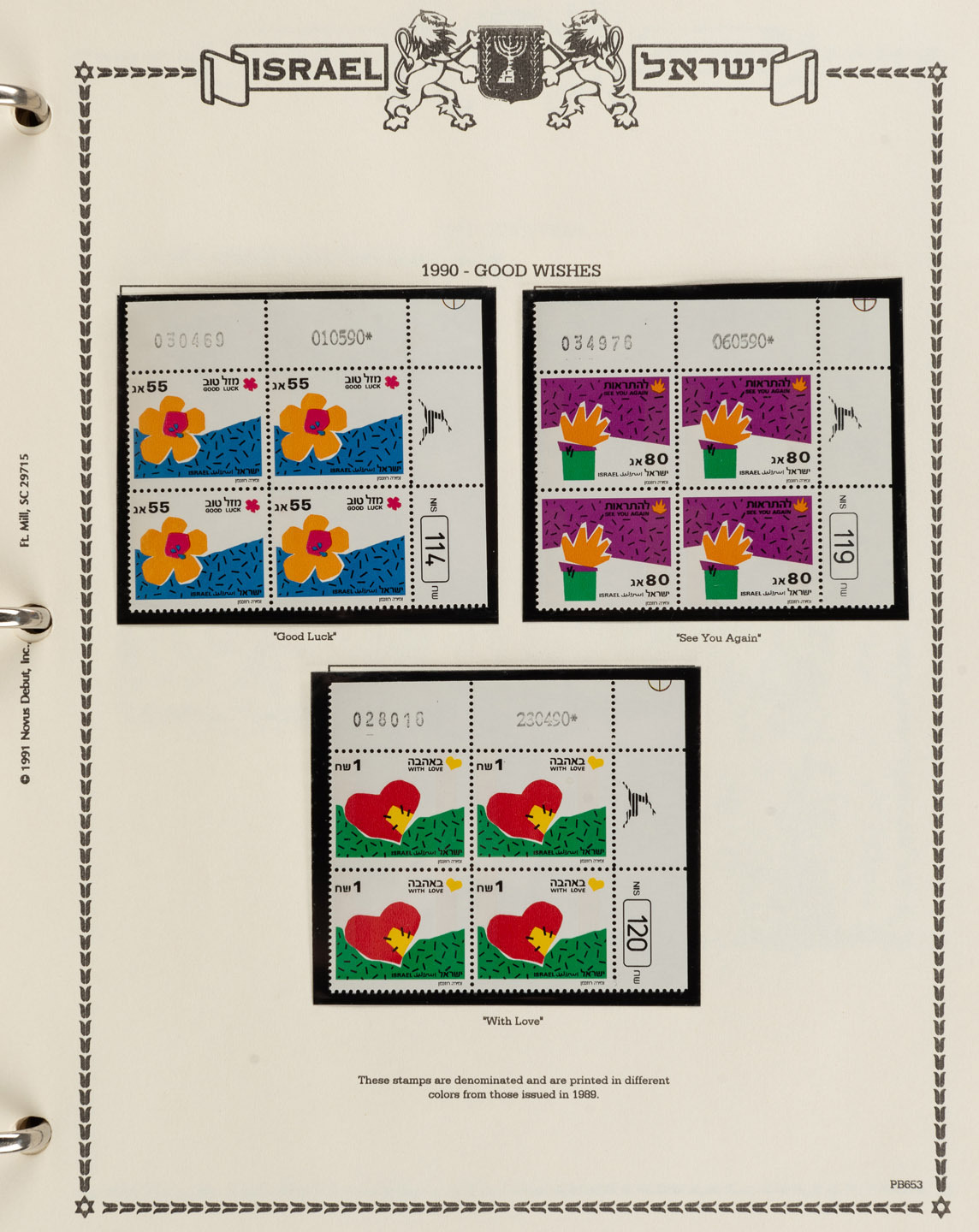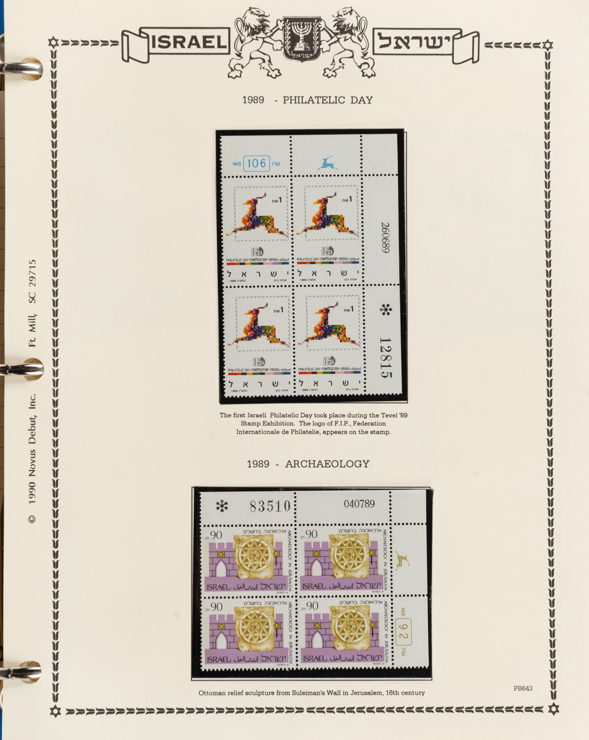 1986 - 1995 comprehensive collection of Plate blocks (and miniature sheets) in a Minkus Israel album; (100s). Face Value: over