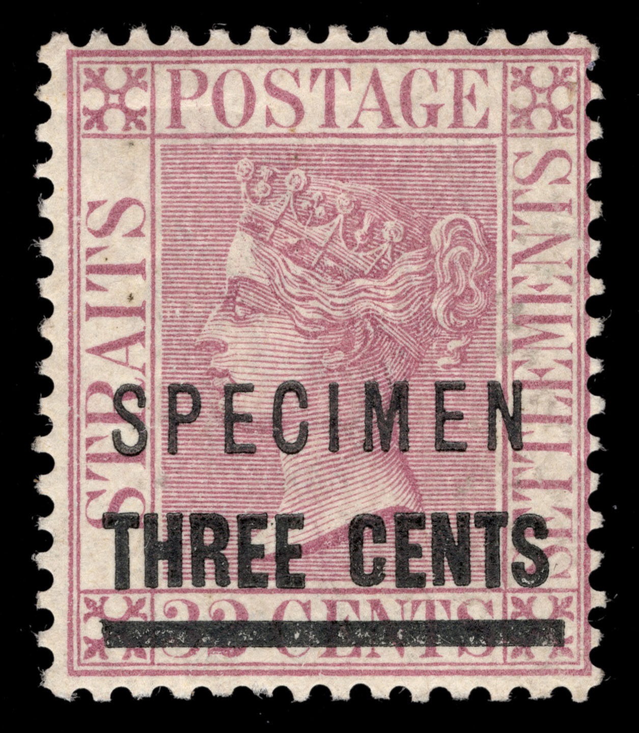 1885 (SG.83s) "THREE CENTS" on 32c pale magenta, overprinted SPECIMEN, full o.g. Cat.£375. (Image 1)