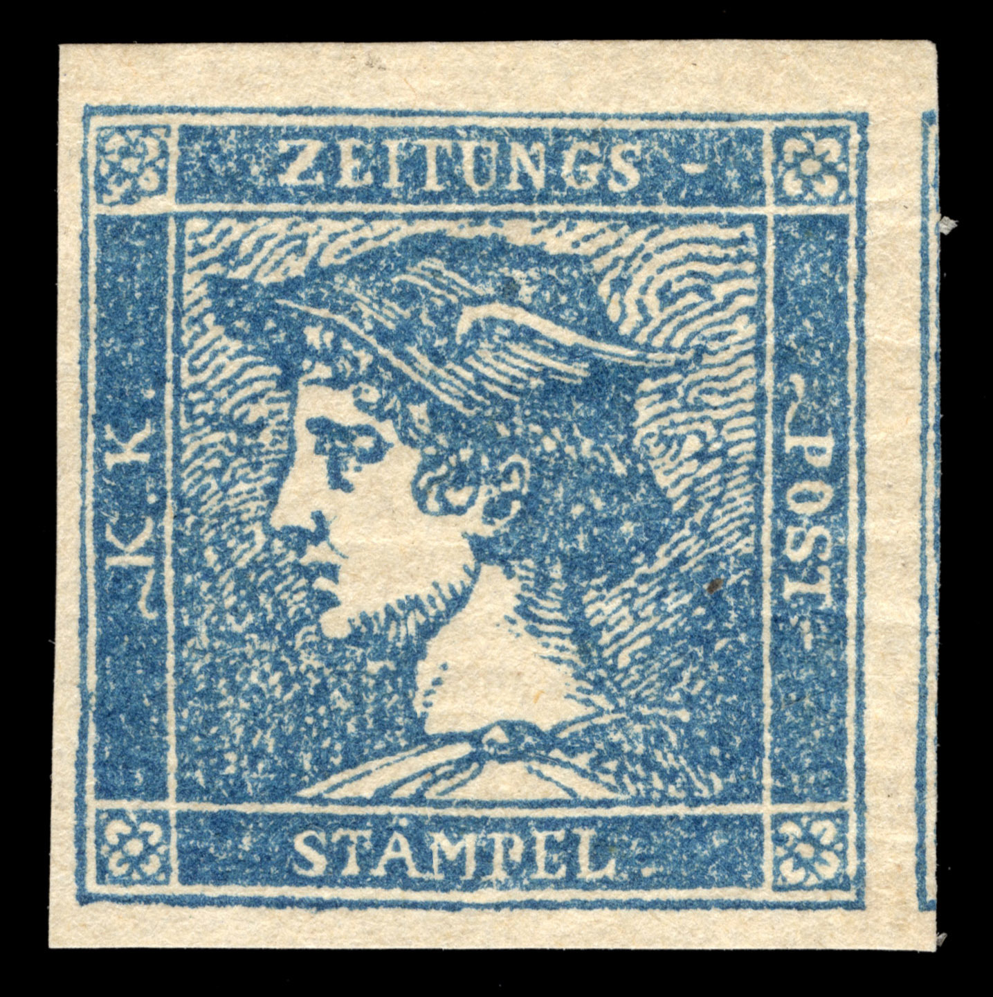LOMBARDY-VENETO: 1855 "Mercury" Newspaper stamp 3 centes blue, Type III blue on Machine-made paper (Sassone