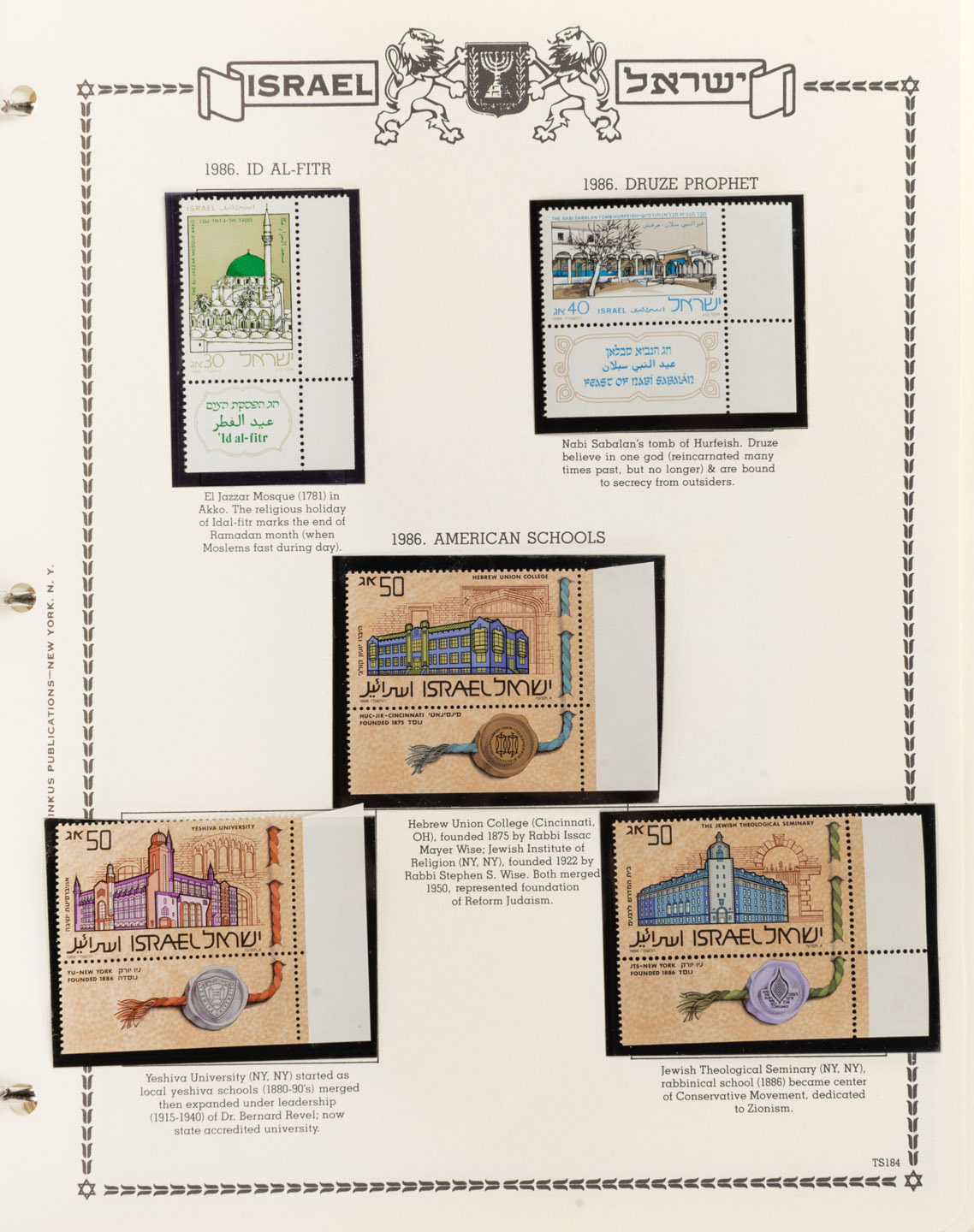 1986 - 1995 comprehensive collection in a Minkus Israel album; comprises of singles, strips, M/Sheets, some blocks and duplicates