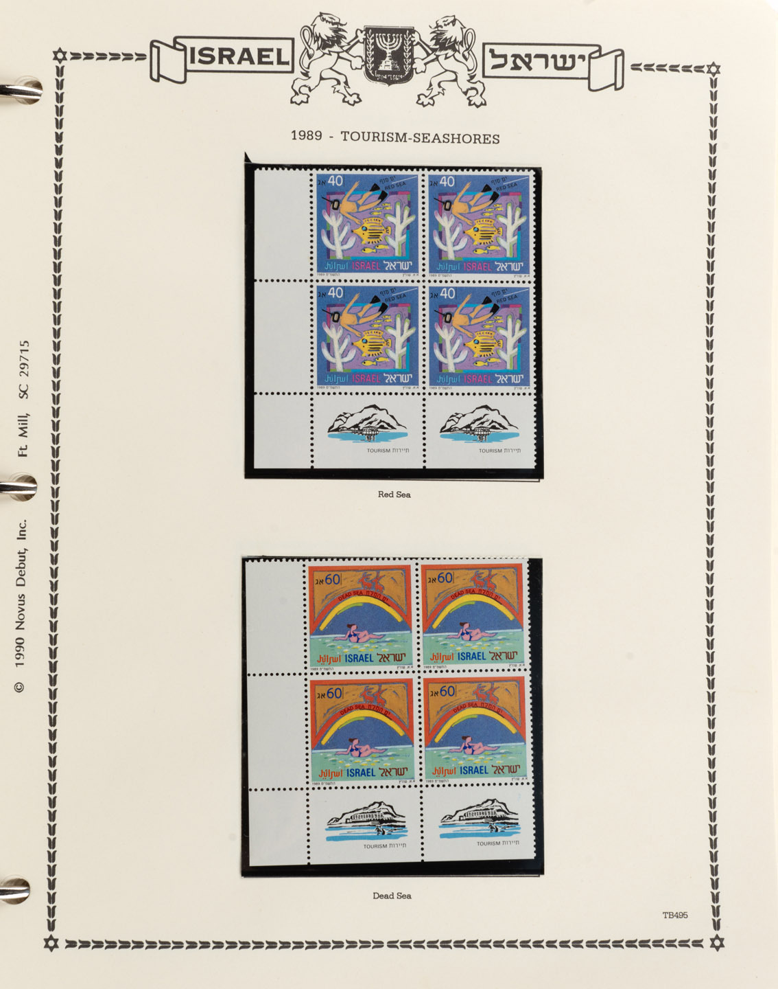 1986 - 1995 comprehensive collection of Tab blocks (and miniature sheets) in a Minkus Israel album; (100s). Face Value: approx