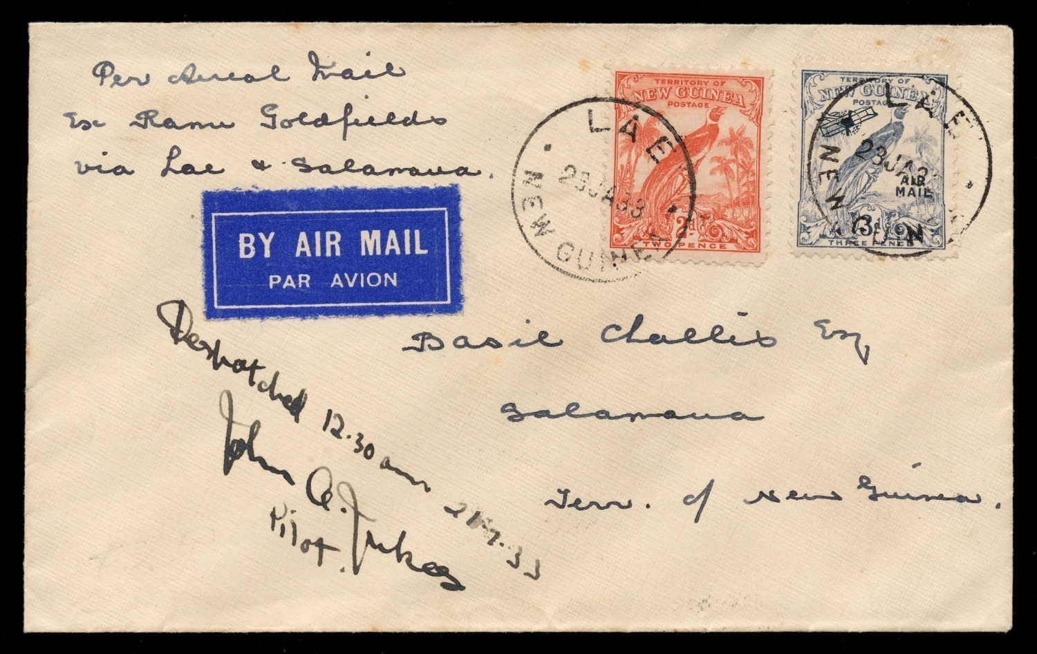 21 Jan.1933 (AAMC.P53) Kainantu (Upper Ramu Goldfields) - Lae - Salamaua cover, flown & signed by John Jukes for Guinea