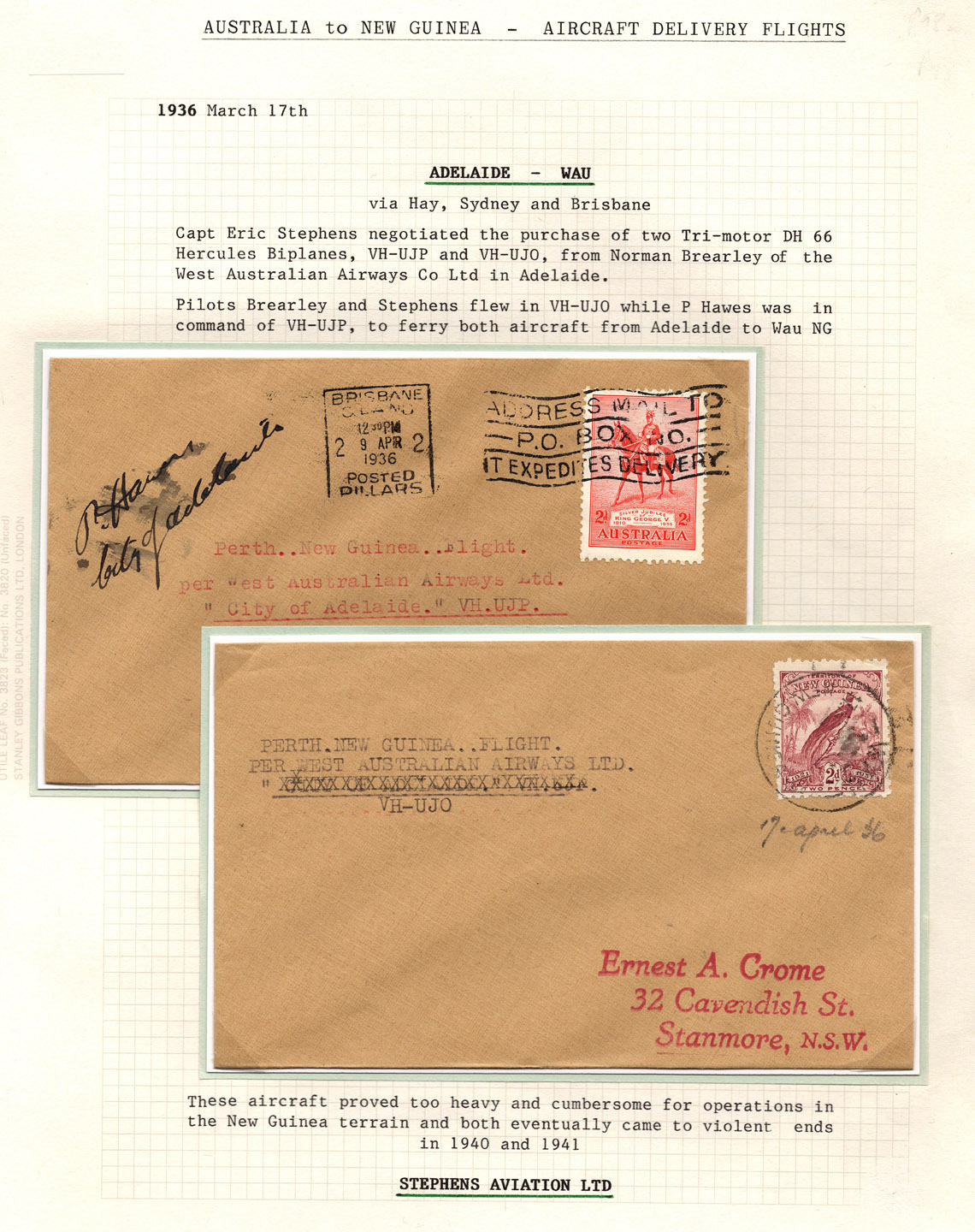 17 Mar.-17 Apr.1936 (AAMC.P98,98a) Sydney - Brisbane cover, flown & signed by P. Hawes, together with Adelaide - Wau cover via