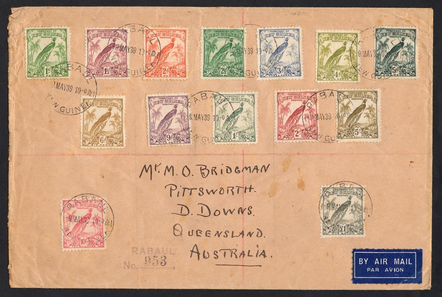 airmail cover from RABAUL to BRISBANE, with arrival cds for PITTSWORTH on the back. (Image 1)