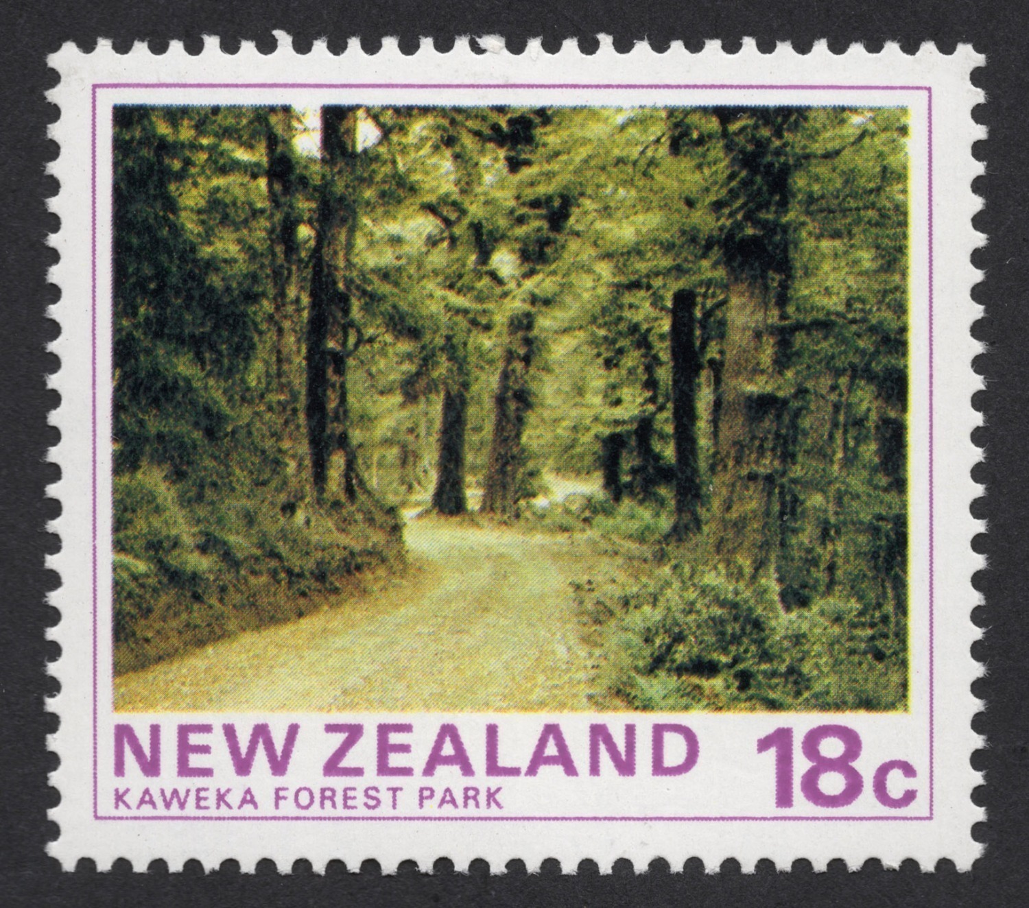 1975 (SG.1077a) 18c Kaweka Forest Park, variety "Blue completely omitted" with normal for comparison, (2) MUH. CP: