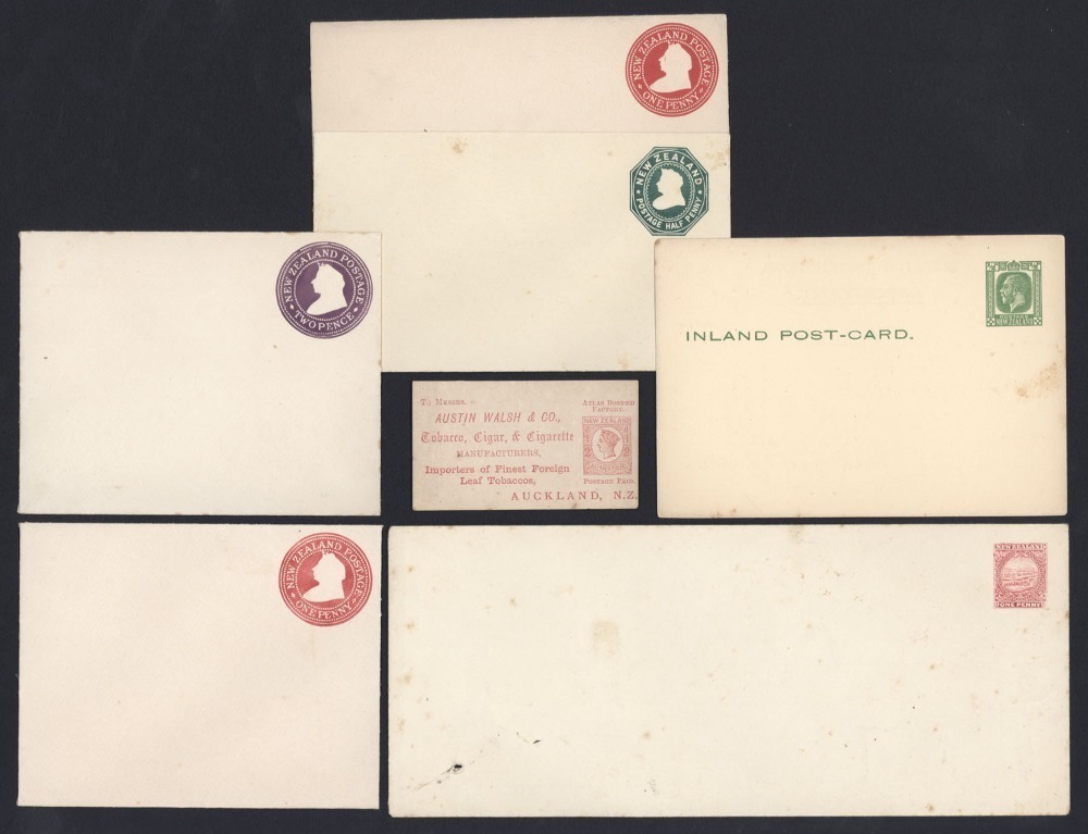 A few oddments, comprising of four 1880s-90s covers (3 with 2nd Sideface adhesives), two different "Pelorus Jack"