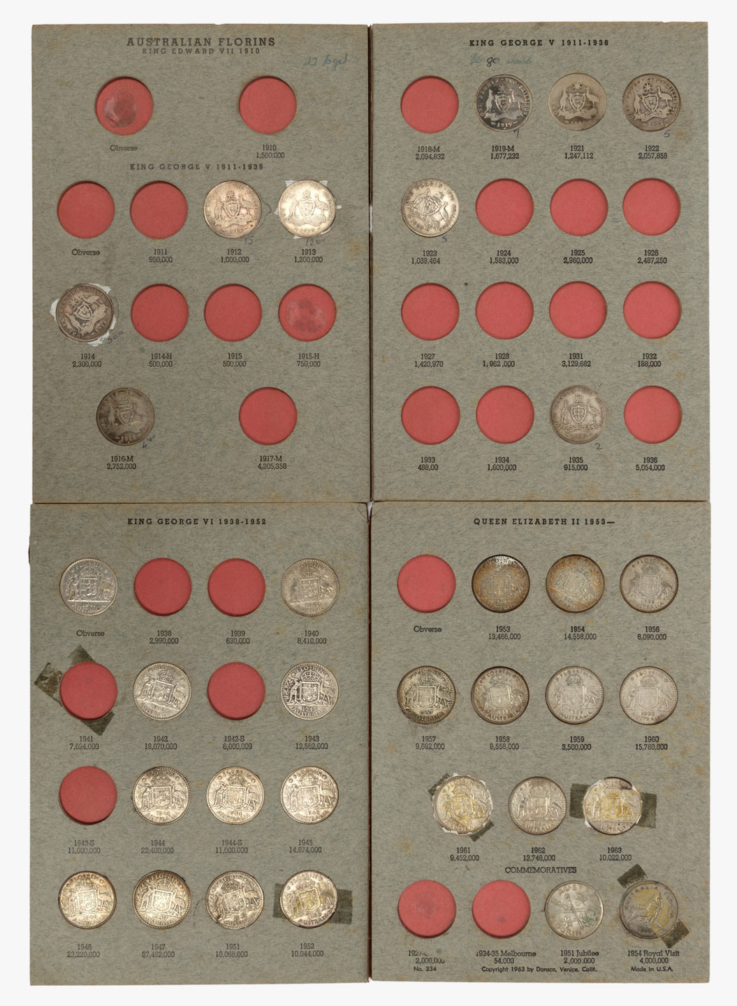 1910 - 1963 collection in a push-in folding album; 1910, 1912, 1917, 1918, 1922, 1924-28, 1934, 1936 and most of the 1940 - 1963