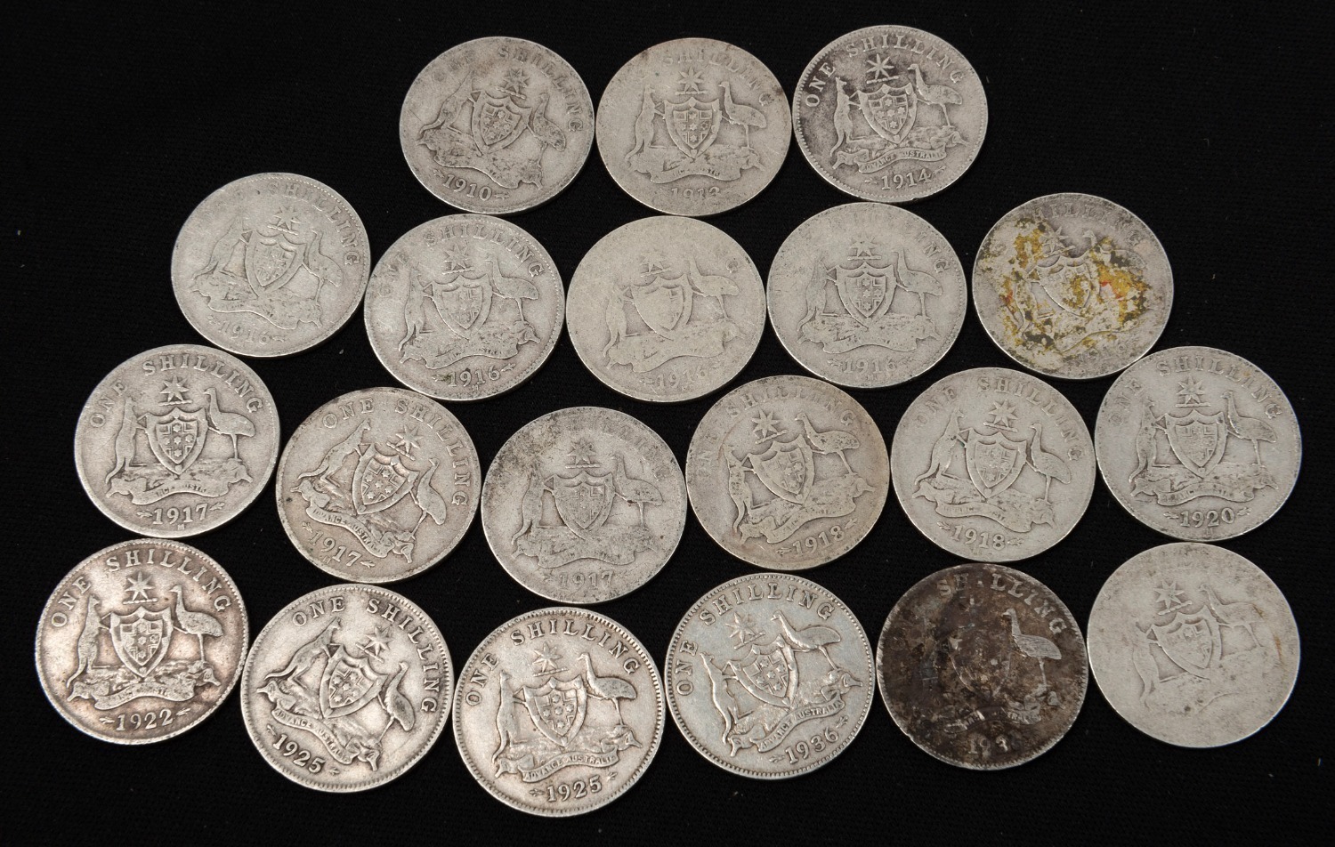SHILLINGS: 1910 - 1936, Edward VII and George V duplicated range, mainly in poor to F condition, (20). (Image 1)