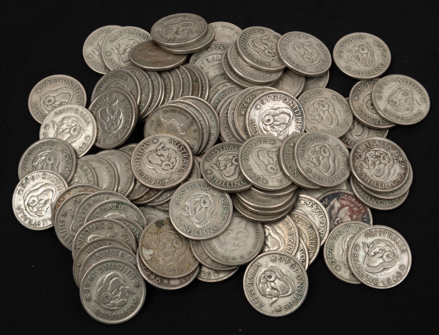 SHILLINGS: George VI, 1946 (Melbourne), mixed condition, (100). (Image 1)