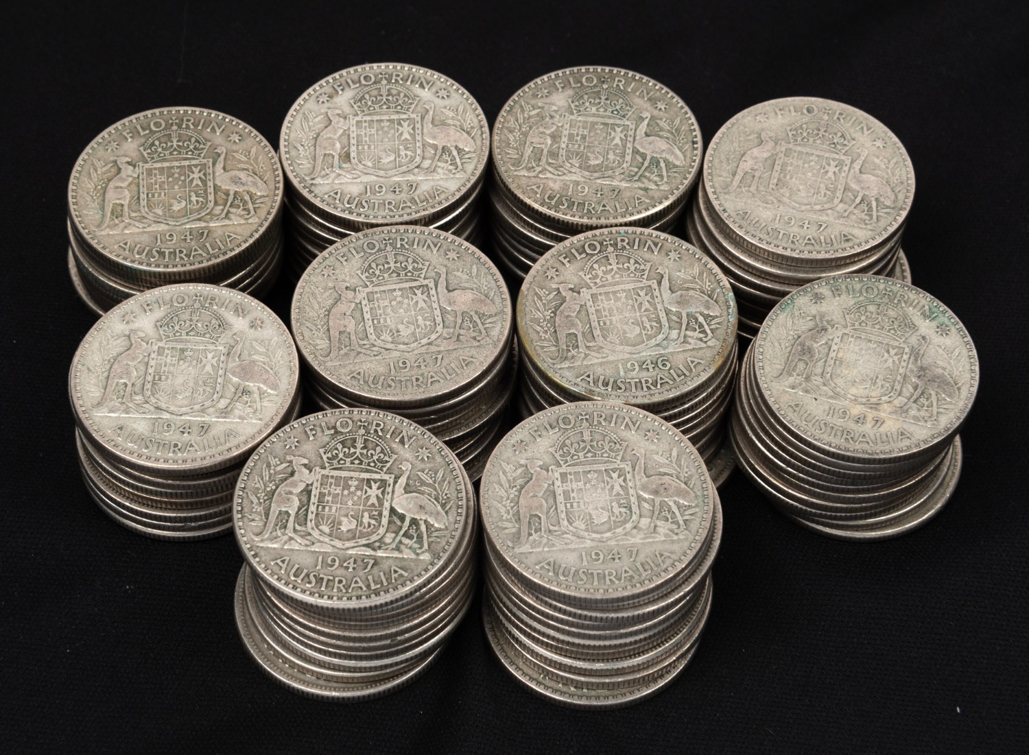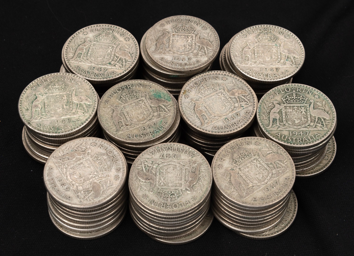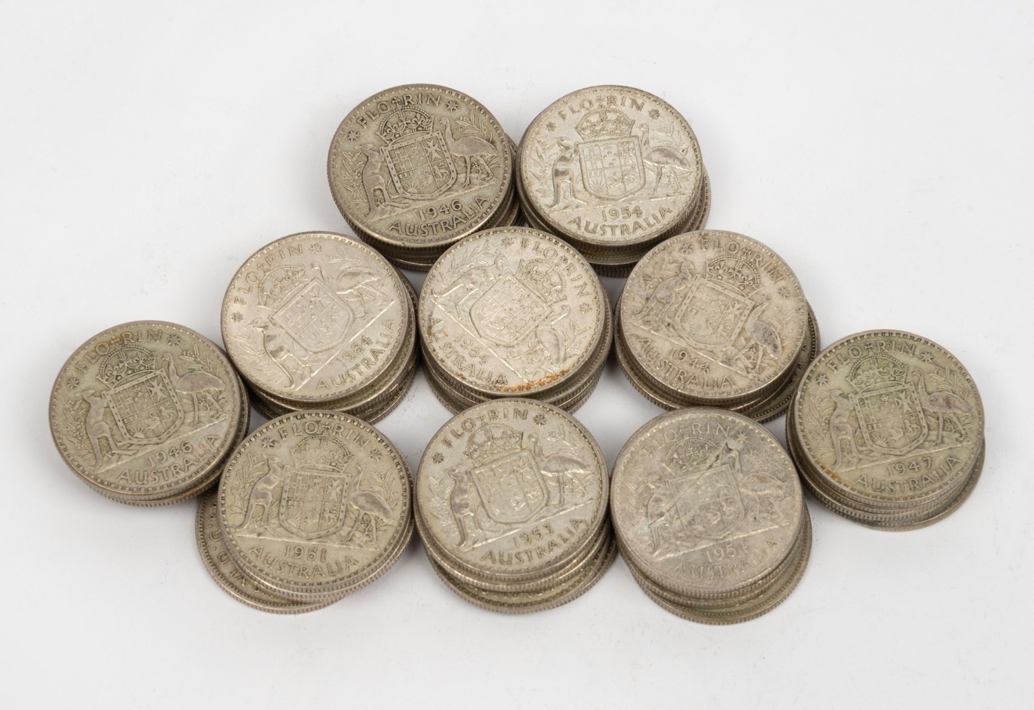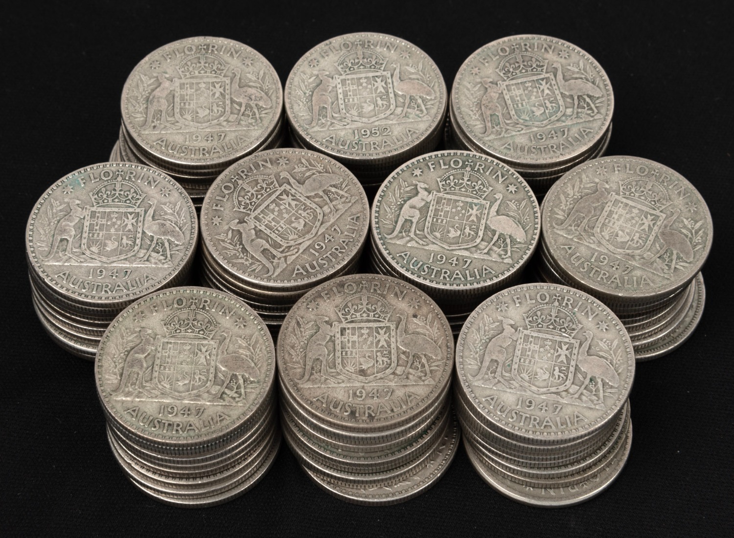 FLORINS: 1947 (52), 1951 (25) and 1952 (23); mixed condition. (Total: 100). (Image 1)