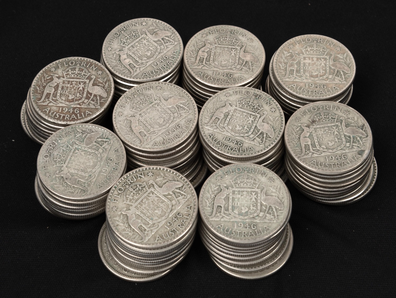 FLORINS: 1946 (25), and 1947 (75) mixed condition. (Total: 100). (Image 1)