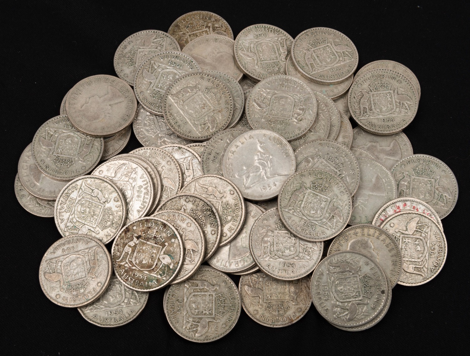 FLORINS: 1947 (31), 1952 (21), 1953 (17) and 1954 (14); mixed condition. (Total: 83). (Image 1)