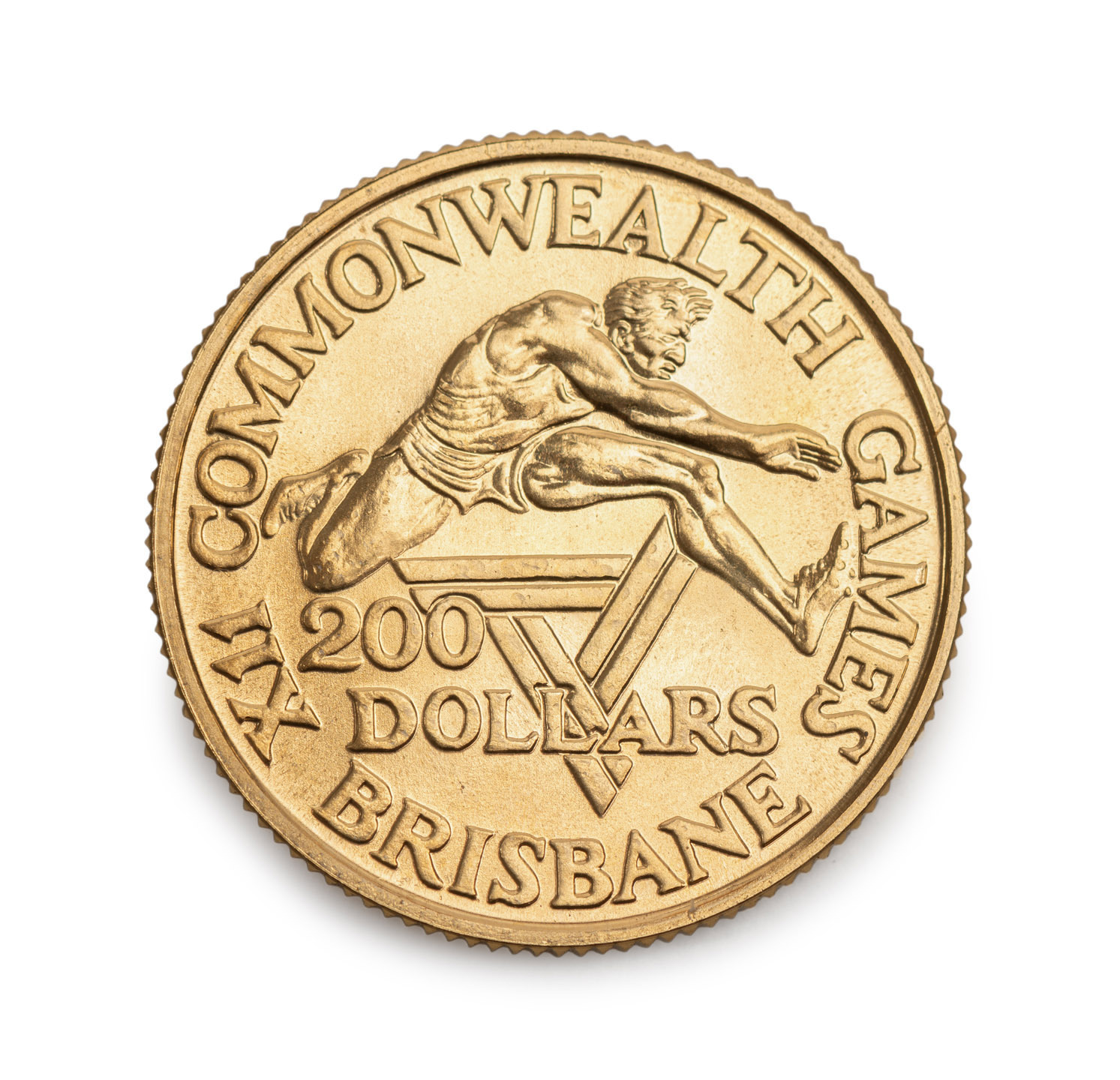 TWO HUNDRED DOLLARS, 1982 $200 Brisbane Commonwealth Games, uncirculated in green plastic folder of issue. (Image 1)