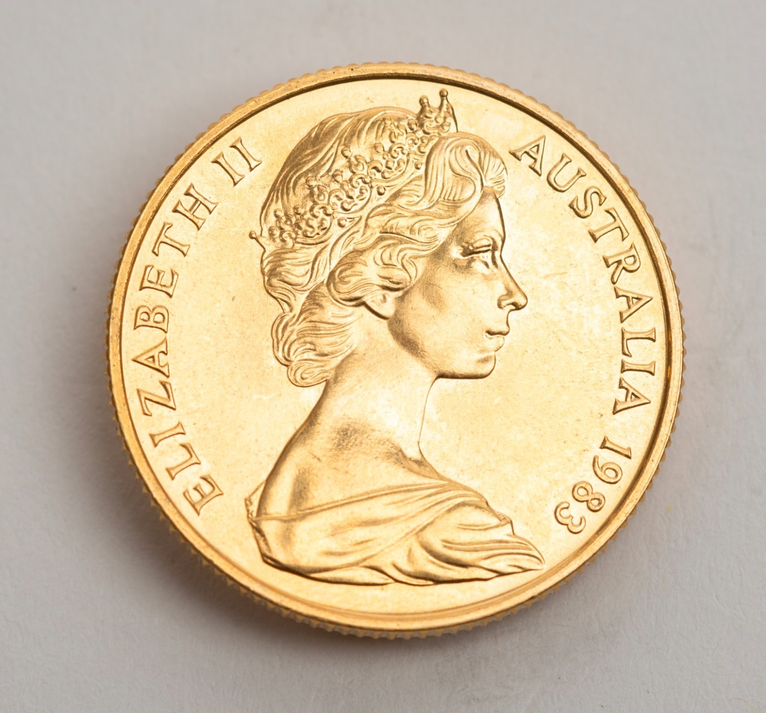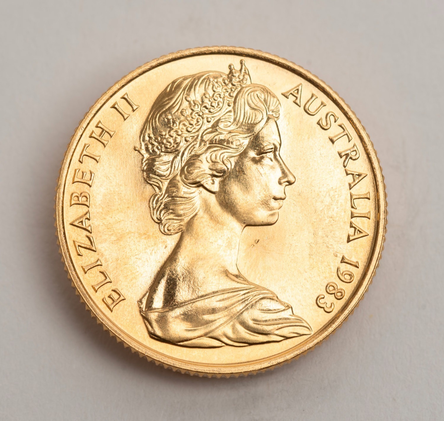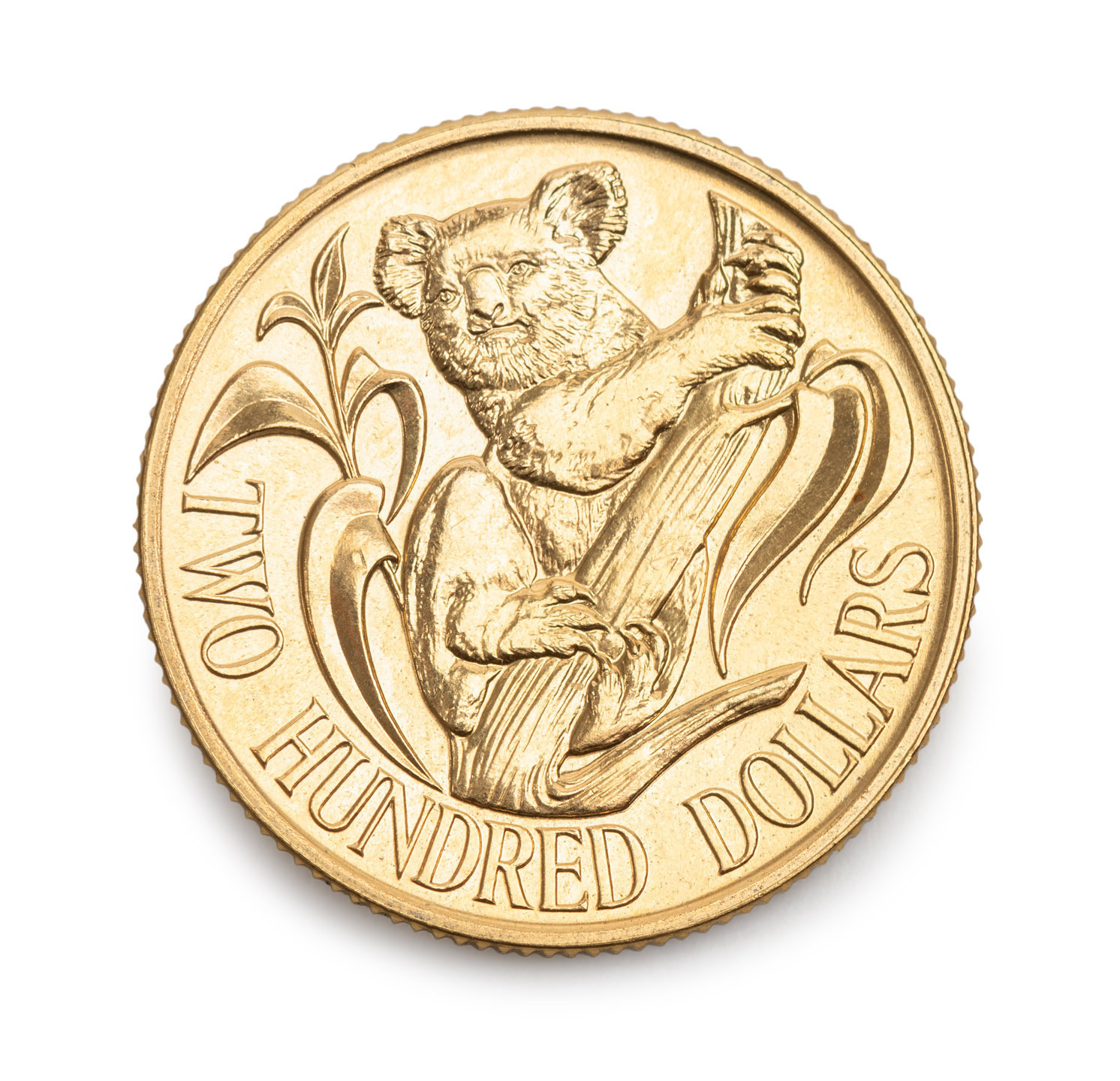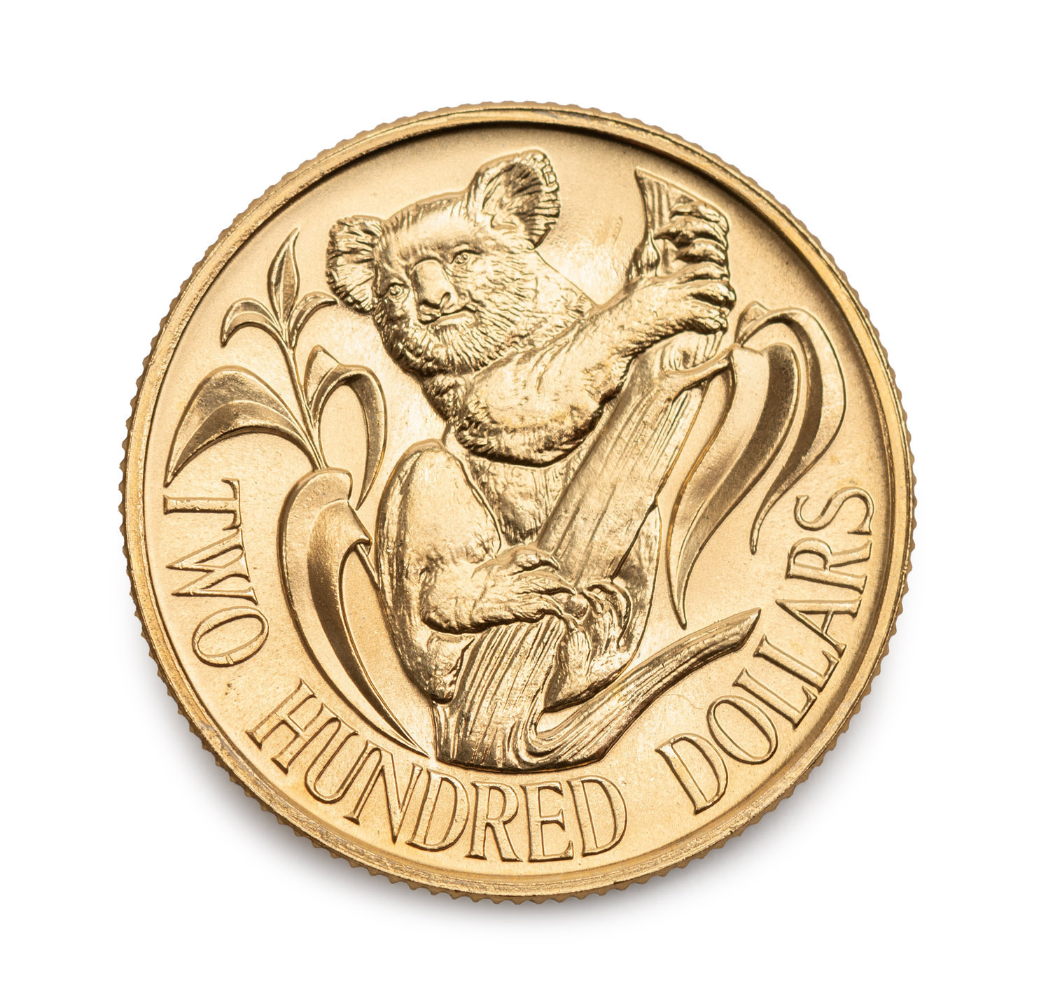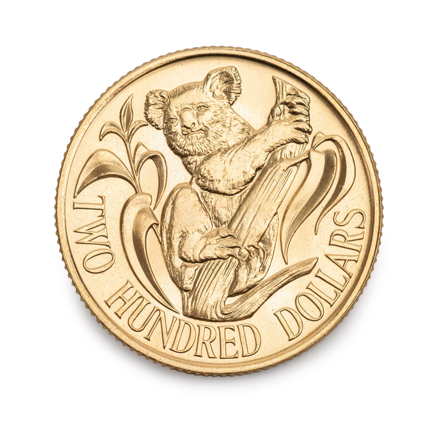 TWO HUNDRED DOLLARS, 1983 $200 gold Koala, uncirculated, in blue plastic folder of issue. (Image 1)