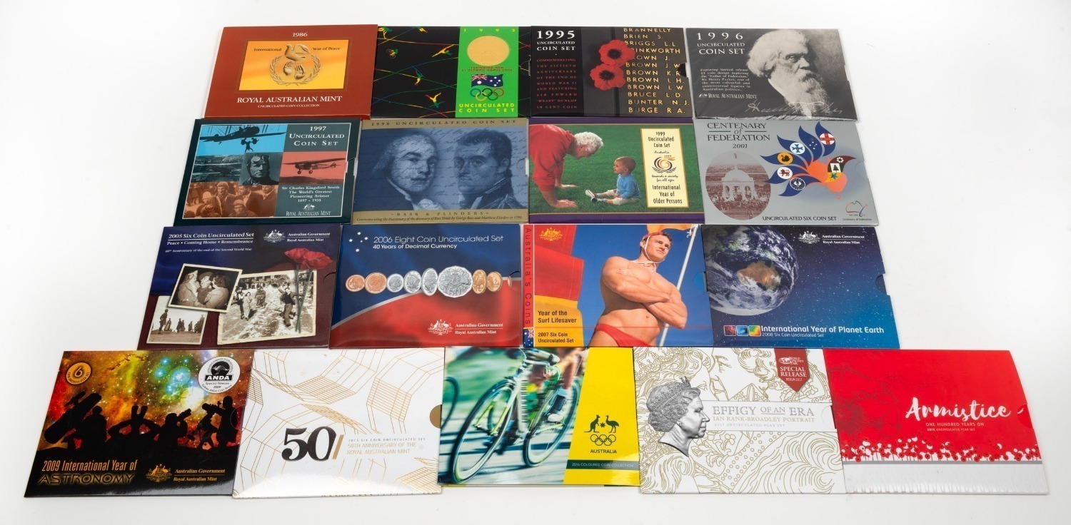 Group of seventeen RAM uncirculated coin sets, including 1996 Sir Henry Parkes, 2001 Centenary of Federation, 2009 ANDA Special