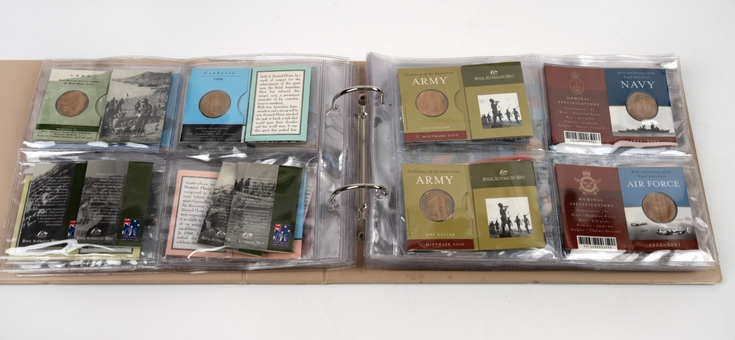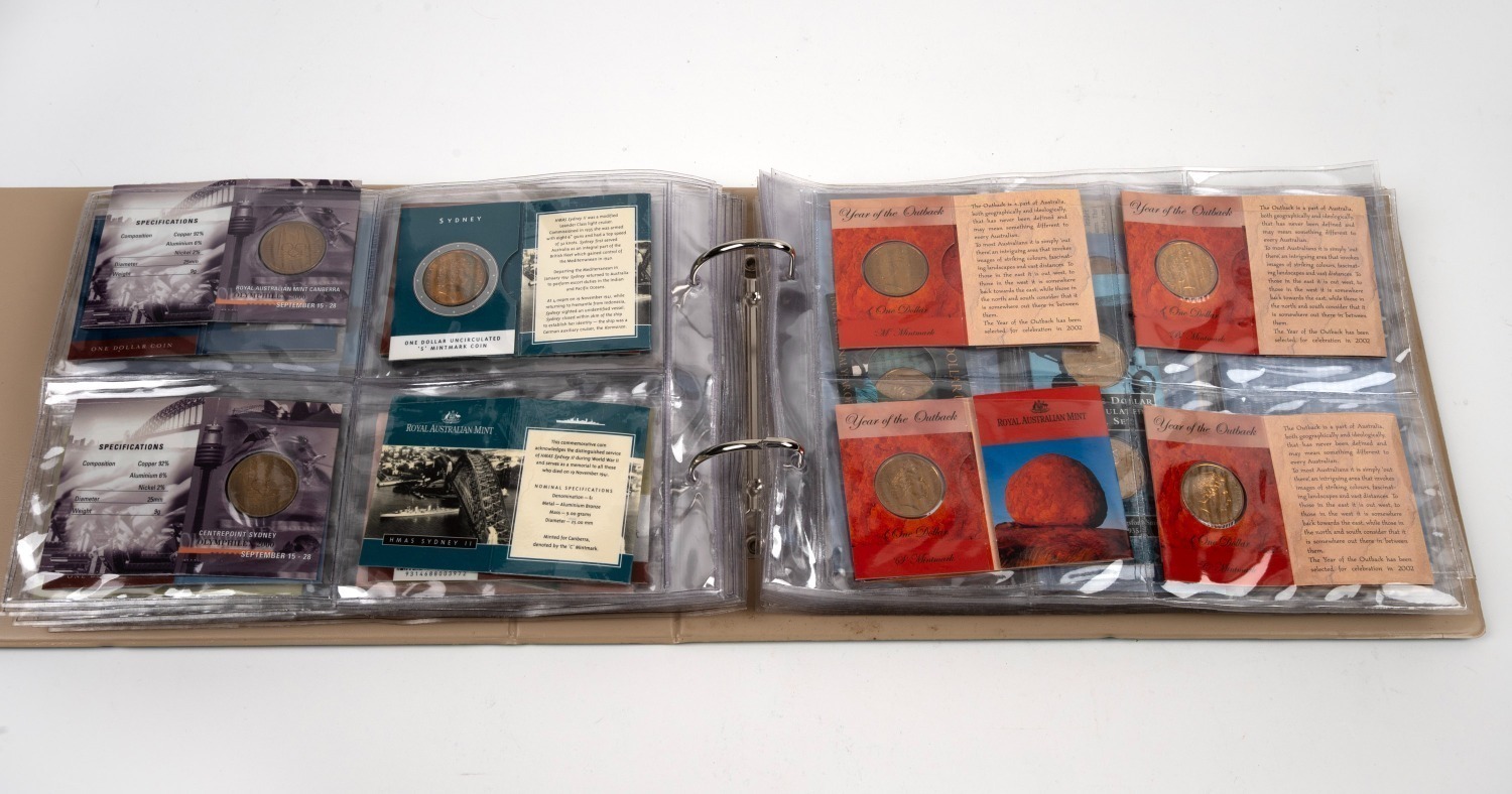 An album containing no fewer than seventy-five RAM commemorative $1 issues from the 1990s and 2000s, all in their original