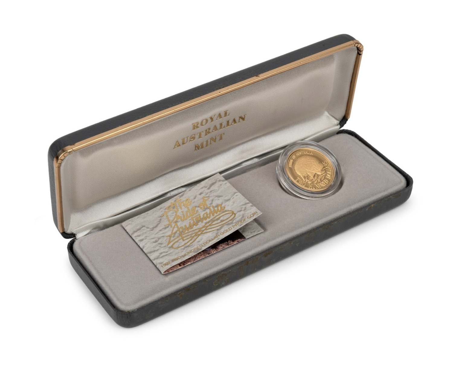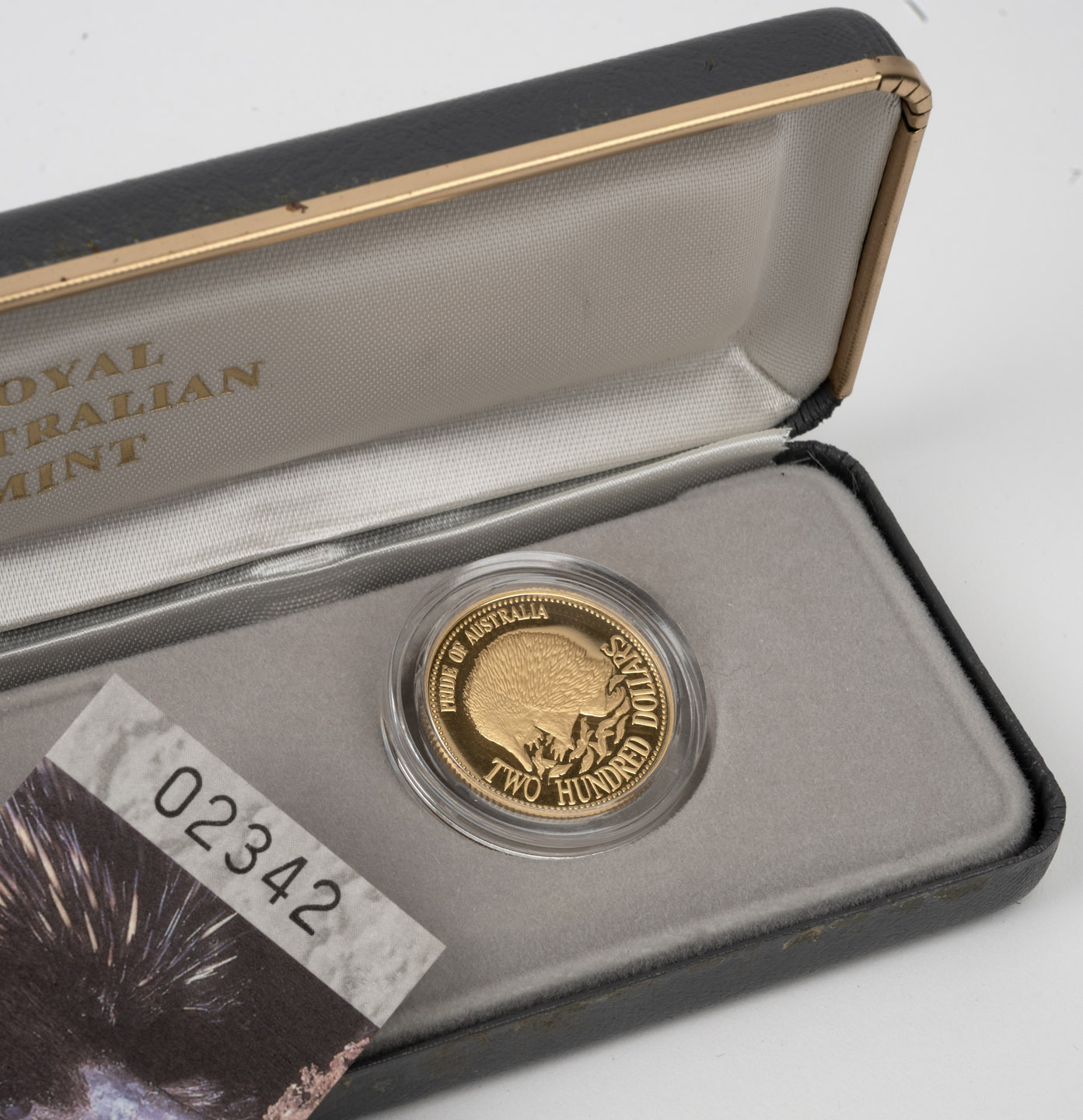 TWO HUNDRED DOLLARS, 1992 $200 gold Echidna, Proof; in original case of issue with CofA. (Image 1)