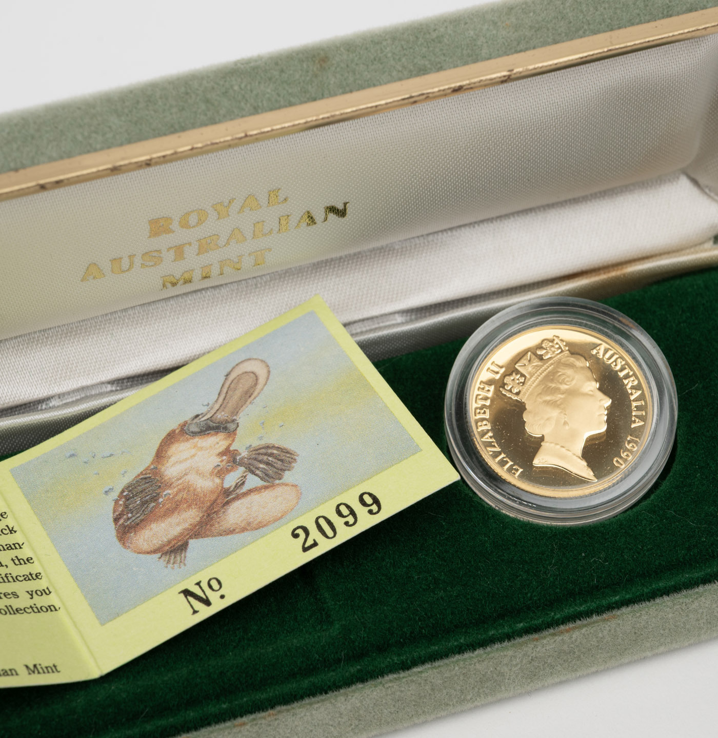 TWO HUNDRED DOLLARS, 1990 $200 gold Platypus, Proof; in original case of issue with CofA. (Image 1)