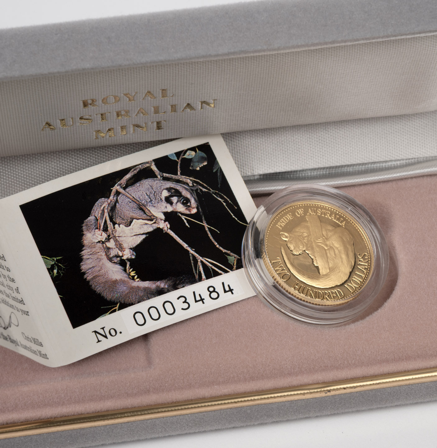 TWO HUNDRED DOLLARS, 1993 $200 gold Possum, Proof; in original case of issue with CofA. (Image 1)