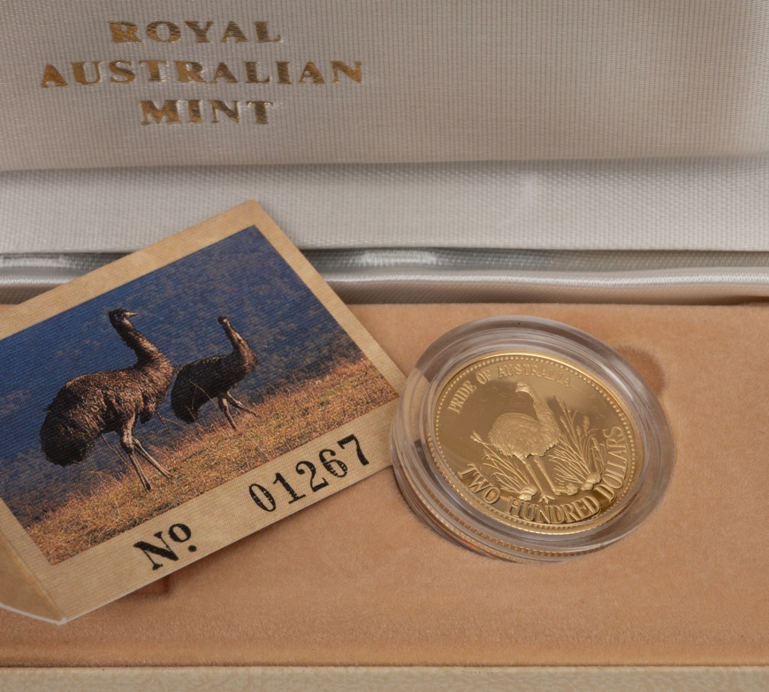 TWO HUNDRED DOLLARS, 1991 $200 gold Emu, Proof; in original case of issue with CofA. (Image 1)