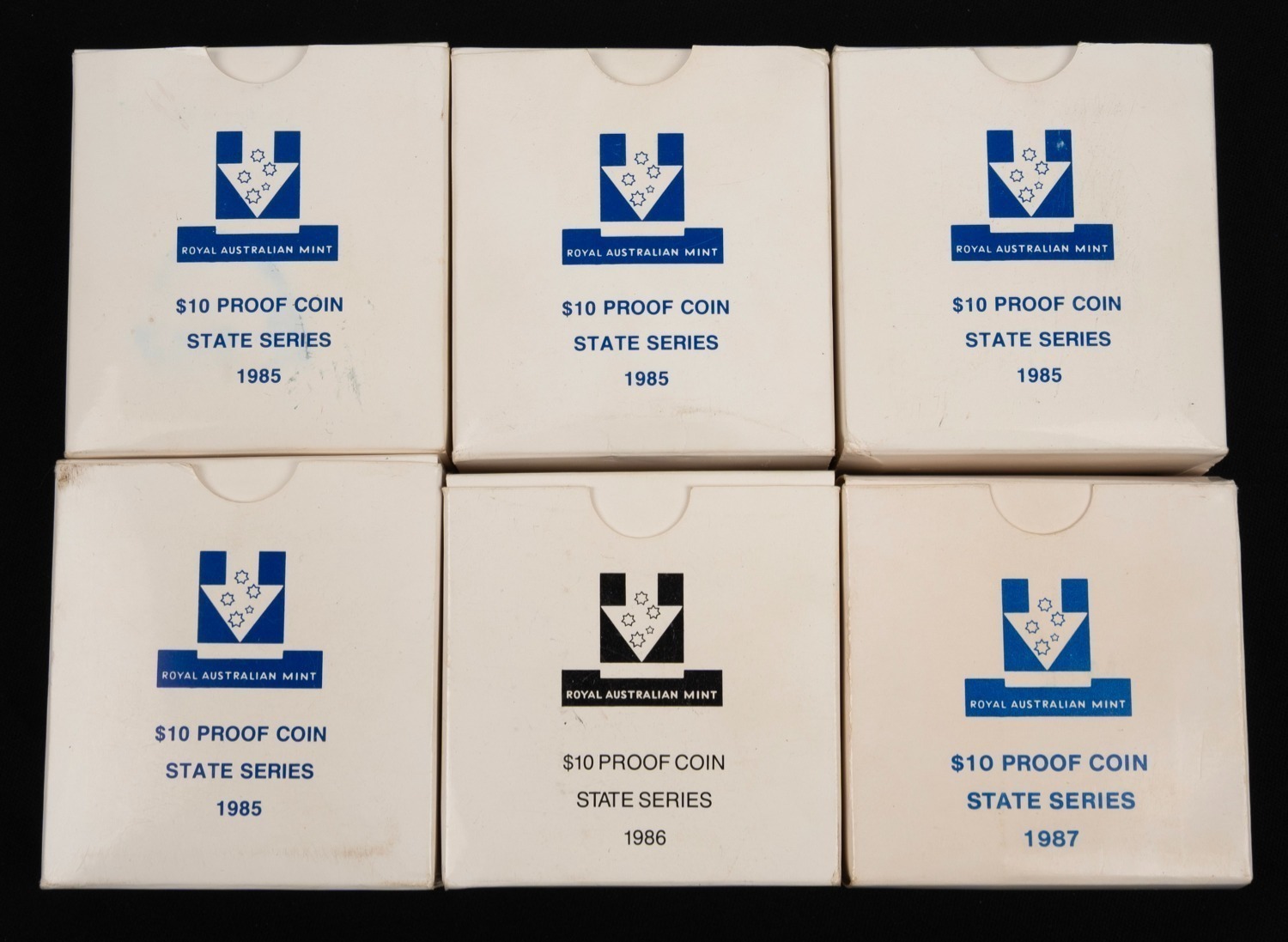 STATE SERIES SILVER PROOFS: Group of RAM $10 issues, comprising 1985 Victoria (4), 1986 South Australia, and 1987 New South Wales;