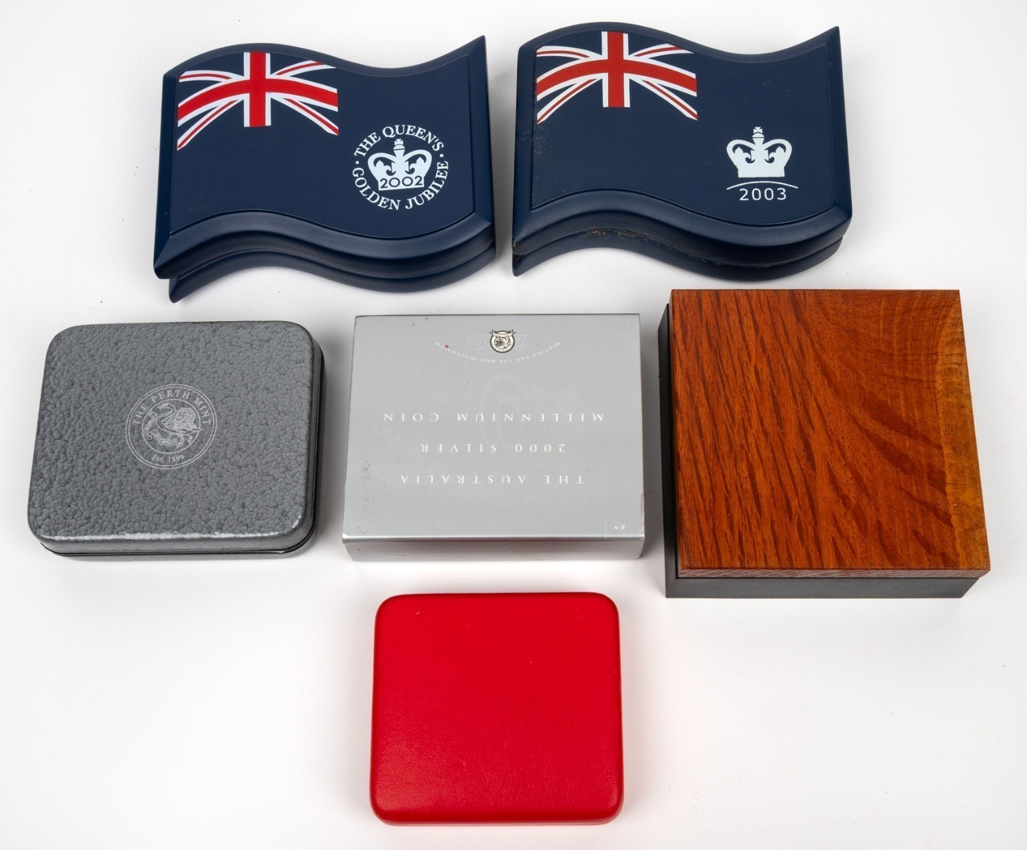PERTH MINT: Group of six silver coins, mostly proof finish, all in presentation cases, comprising 2000 Millennium coin, 2002 The