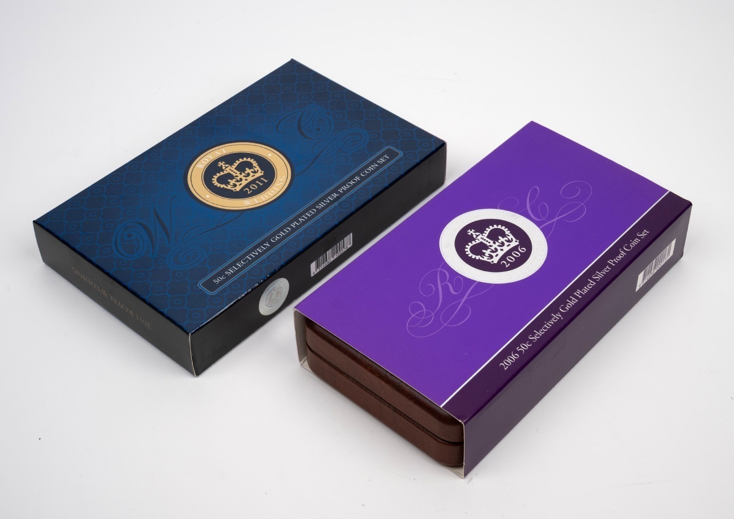 SELECTIVELY GOLD-PLATED SILVER PROOFS: Group of two RAM two-coin sets, both in presentation case with box and CoA, comprising 2006