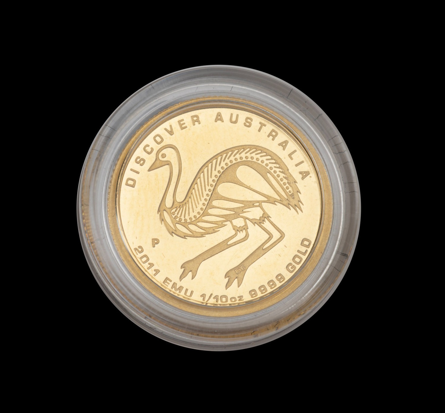 DISCOVER AUSTRALIA: Perth Mint 2011 1/10oz Emu $15 gold proof, "P" mint mark, in coin capsule. (Image 1)