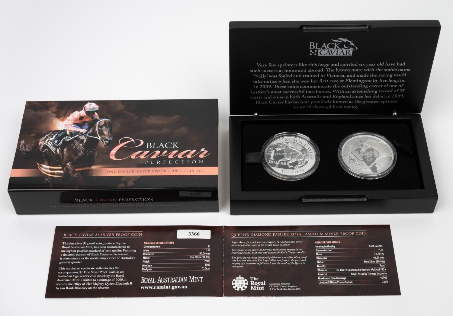 BLACK CAVIAR: 2013 RAM/The Royal Mint joint-issue two-coin silver proof set, comprising 1oz silver Australian $1 and 1oz silver
