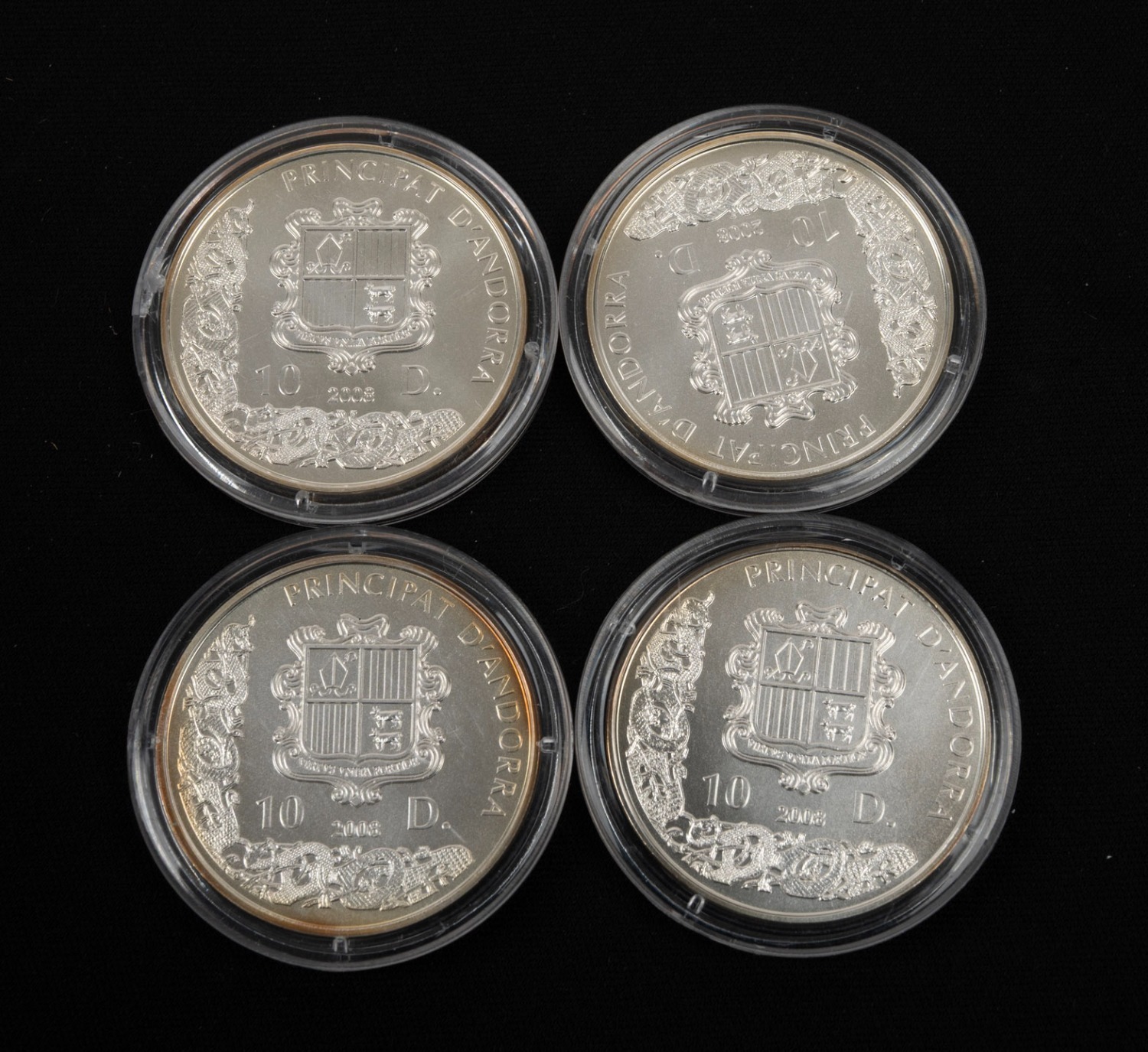 ANDORRA - GILDED PROOFS: Set of four 2008 "Viking Series" 10 Diner coins, each 33g sterling silver, all in coin