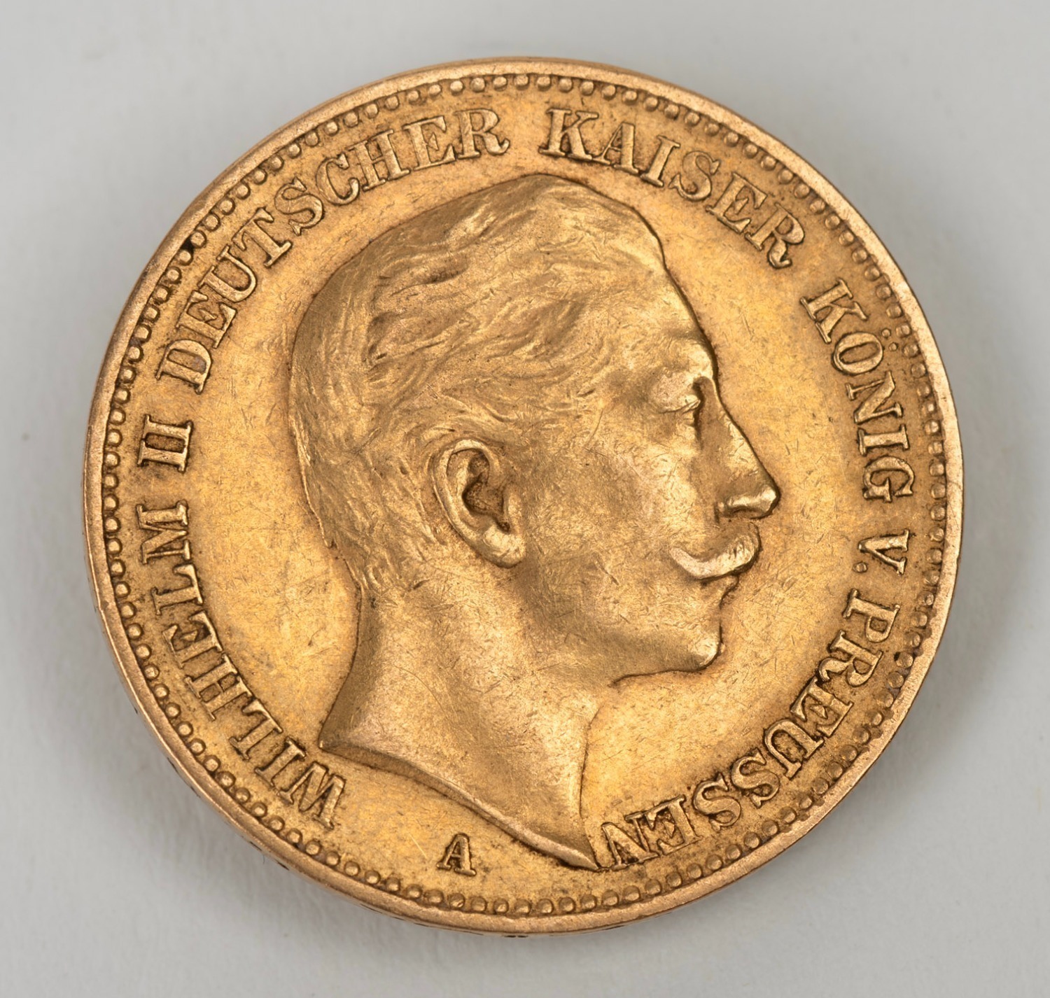 1905 Wilhelm II, 20 Mark, gold (7.95g), Berlin Mint, VF. (Image 1)