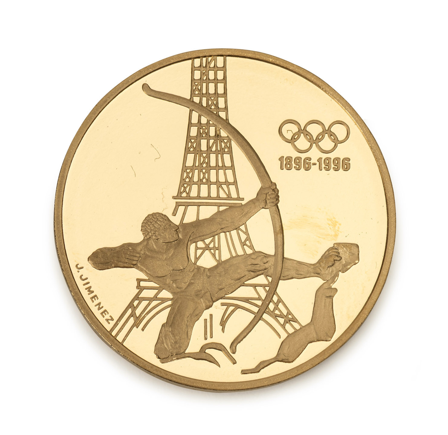 1994 500 francs gold Proof (16.97g), produced for the IOC Centennial 1896-1996 Series - featuring an archer in front of the Eiffel