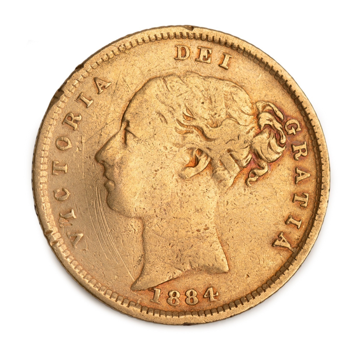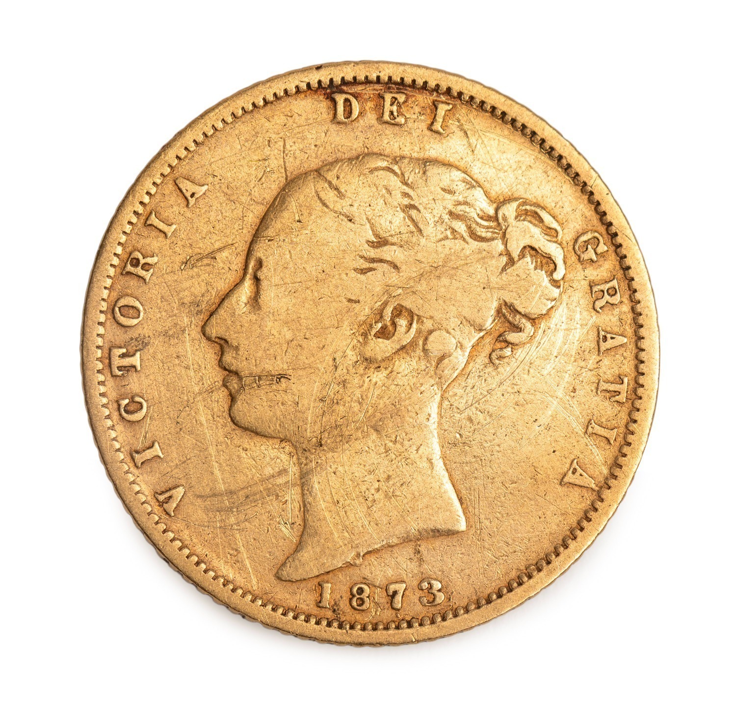 1873 Half Sovereign, Queen Victoria, Shield Reverse, with previously unrecorded Plate Number 276 below the shield, F. (Image 1)
