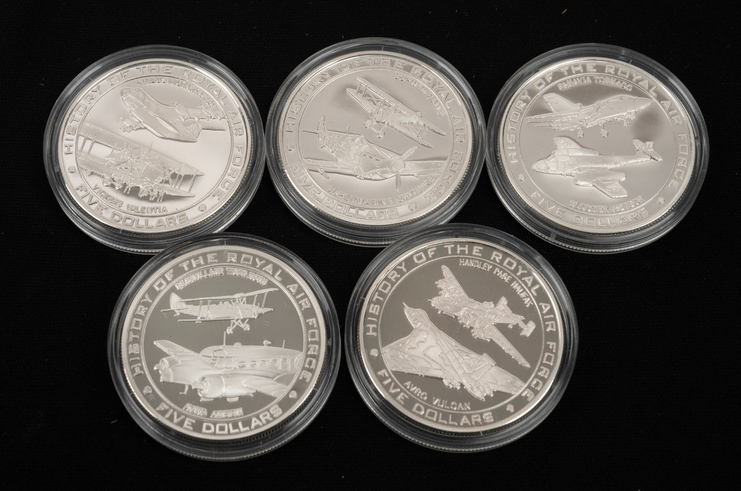 SILVER PROOFS - HISTORY OF THE ROYAL AIR FORCE: Set of five 2008 $5 coins, each 28.28g sterling silver, all in coin capsules,