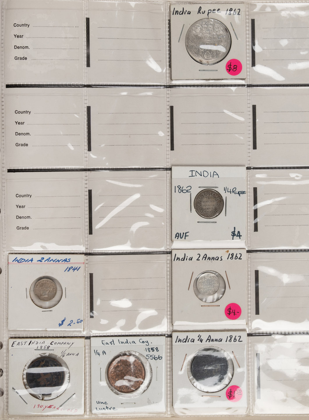 1833 - 1948 collection/accumulation in an album, which also includes a few later coins. Mainly silver, with values to 1 Rupee.