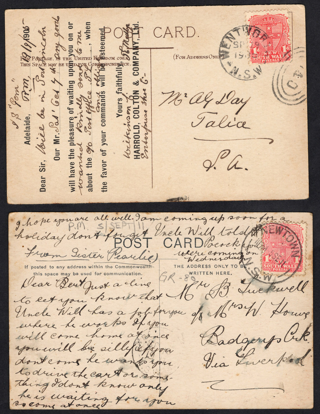 AGRICULTURE & TRAVEL?: An illustrated postcard issued by WINCHCOMBE, CARSON & Co. Ltd., Sydney, (wool brokers, stock and