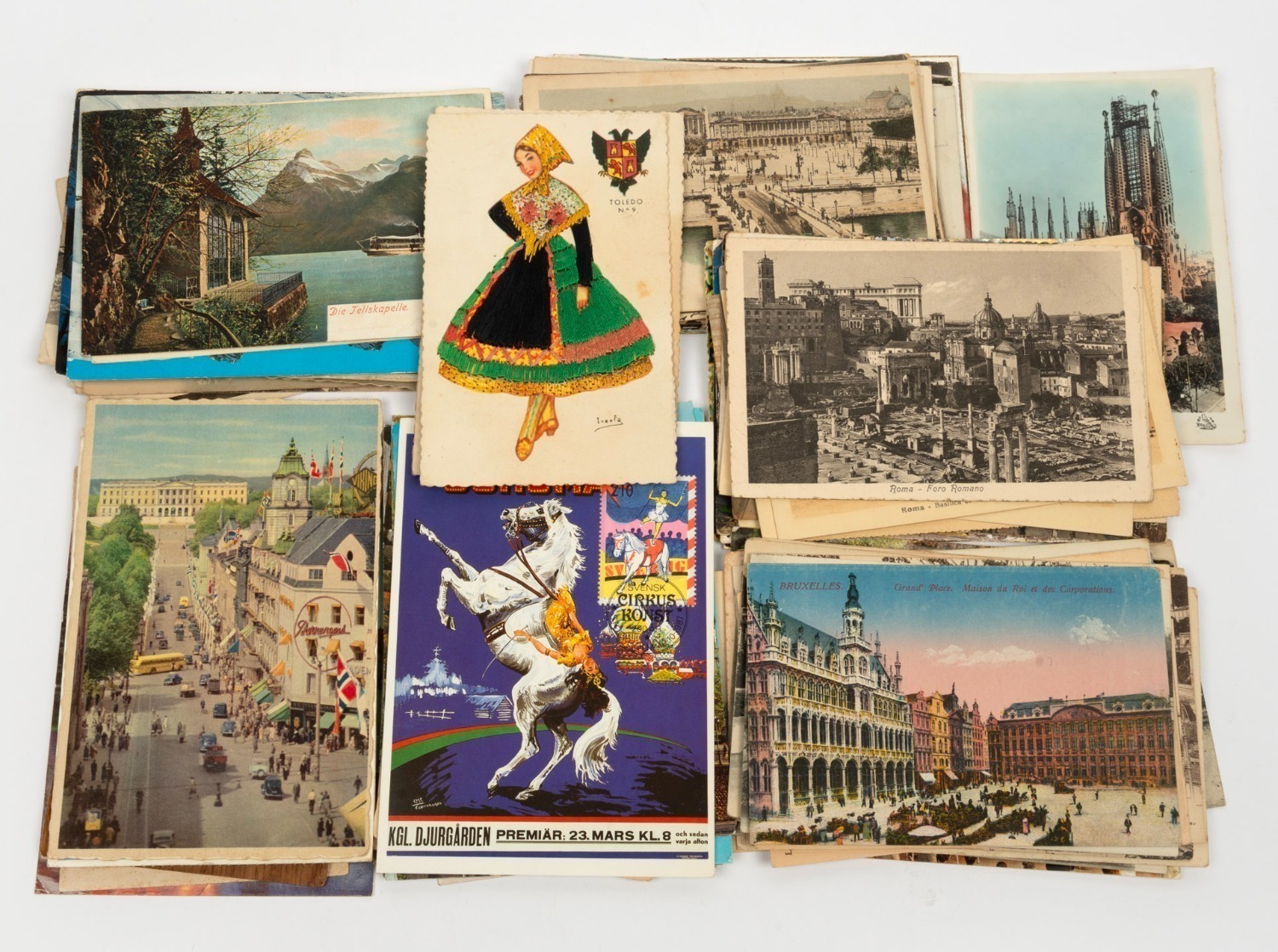 CONTINENTAL EUROPE: Group of more than ninety postcards, issued in decades spanning the 1900s to the 1970s, featuring views of