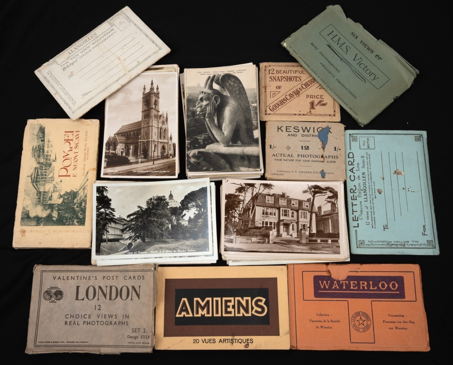 Valentine's London 5028 complete set of 12), generally unused c. 1920s, with many views of London, Dublin, and Bournemouth, and others. (Image 1)