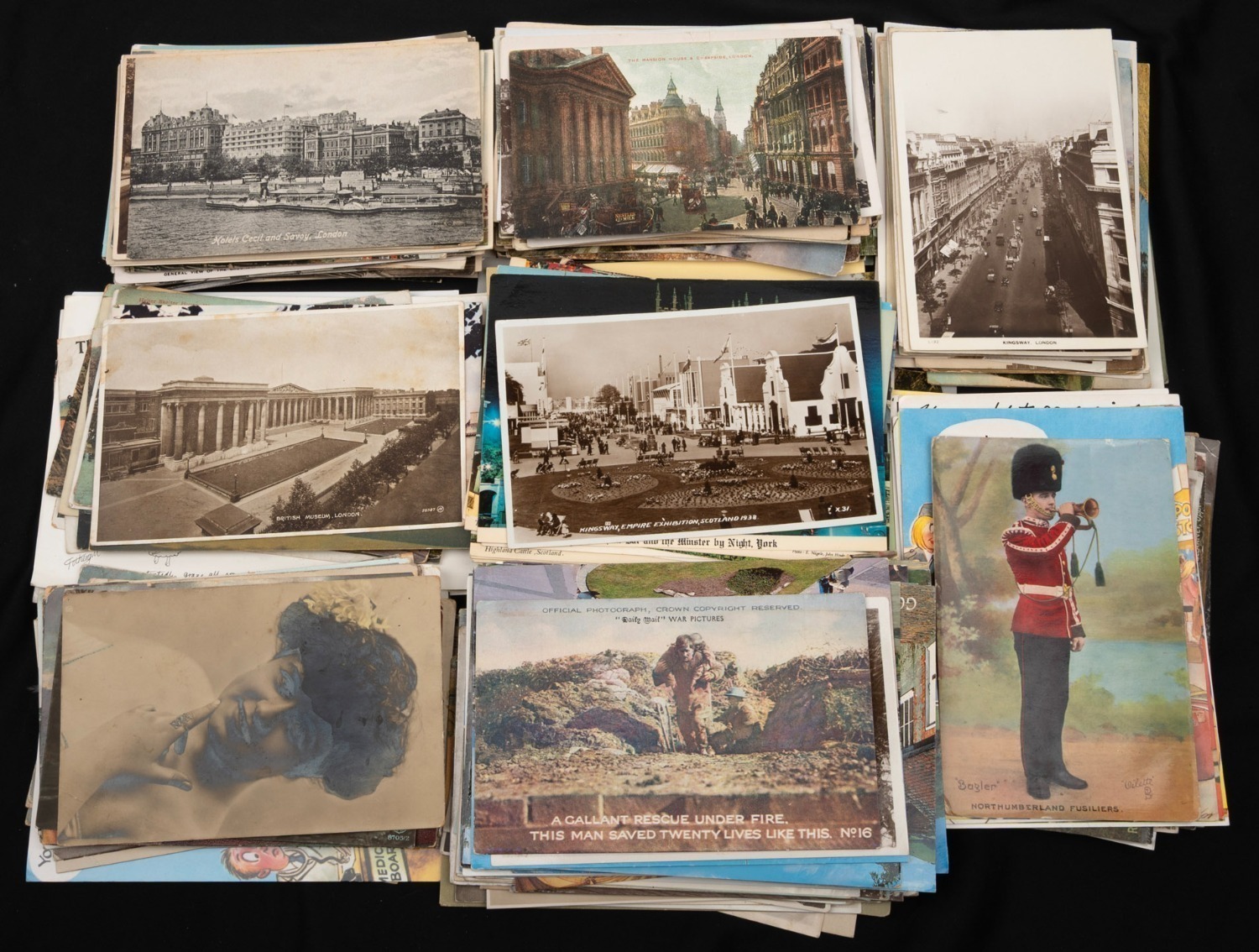 postcard eras represented, including some 1900s/1910s types from publishers such as Rose, C.A. Pitt, and Donald Taylor Collotype Company. (350+ items) (Image 1)