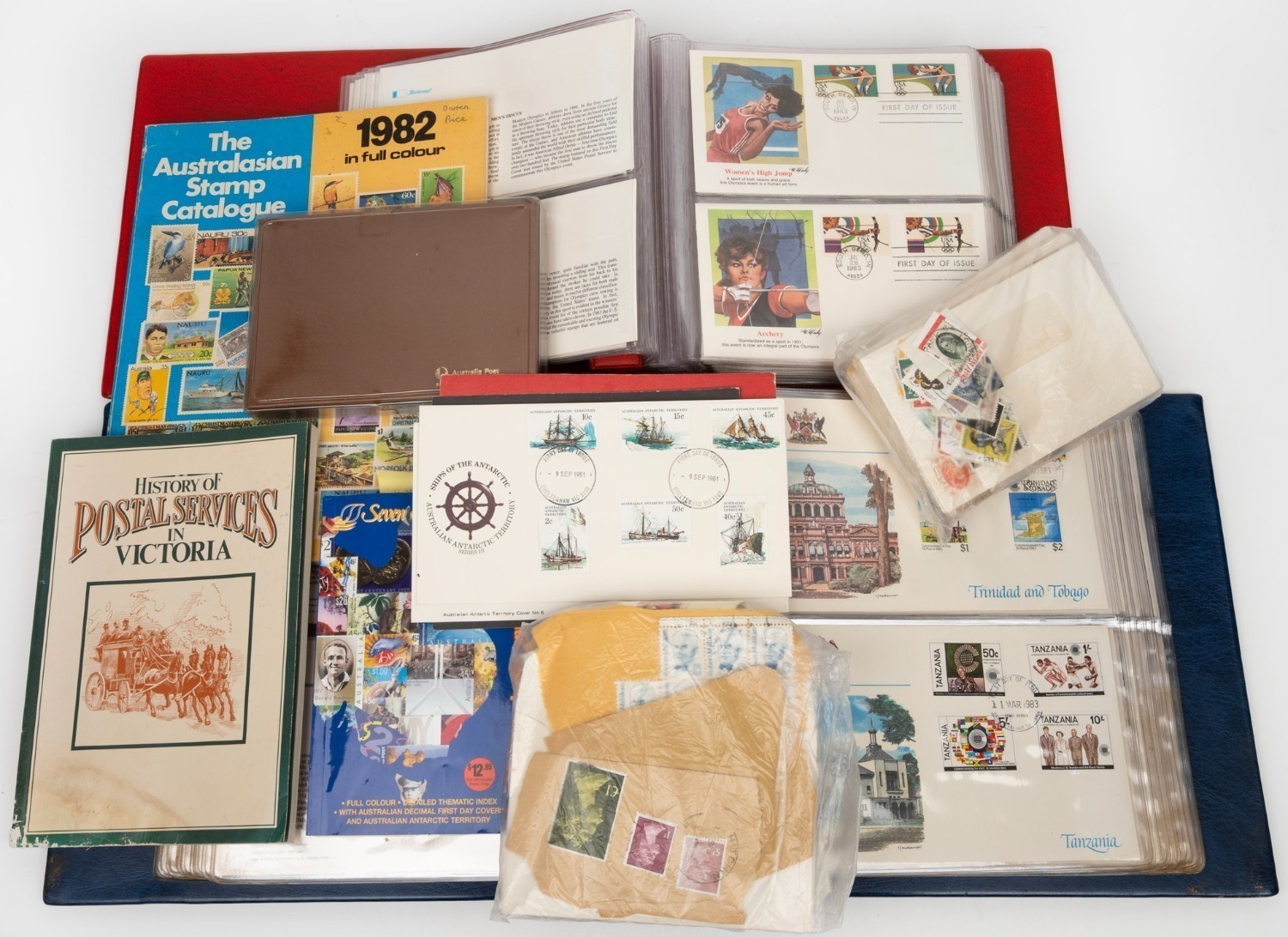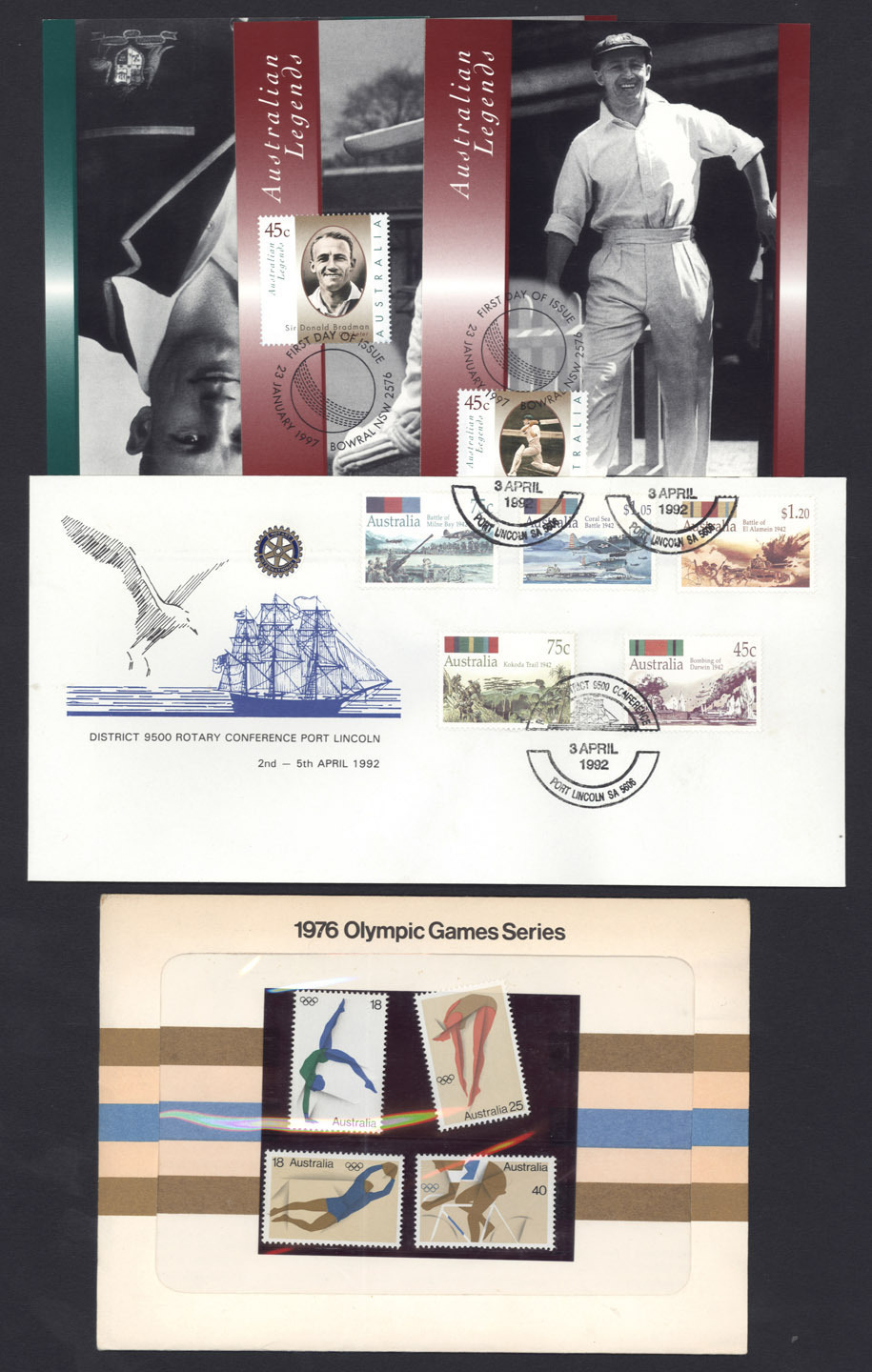 Frama), plus Sydney 2000 Australian Gold Medallists/Athens 2004 Australian Gold Medallists/2006 Commonwealth Games/Beijing 2008 stamp albums; total FV $1470+. (26 items) (Image 1)