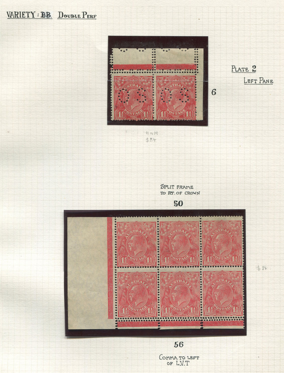 Specialist 1½d Red collection, mostly on annotated pages showing pen & ink illustrations of varieties. Better items