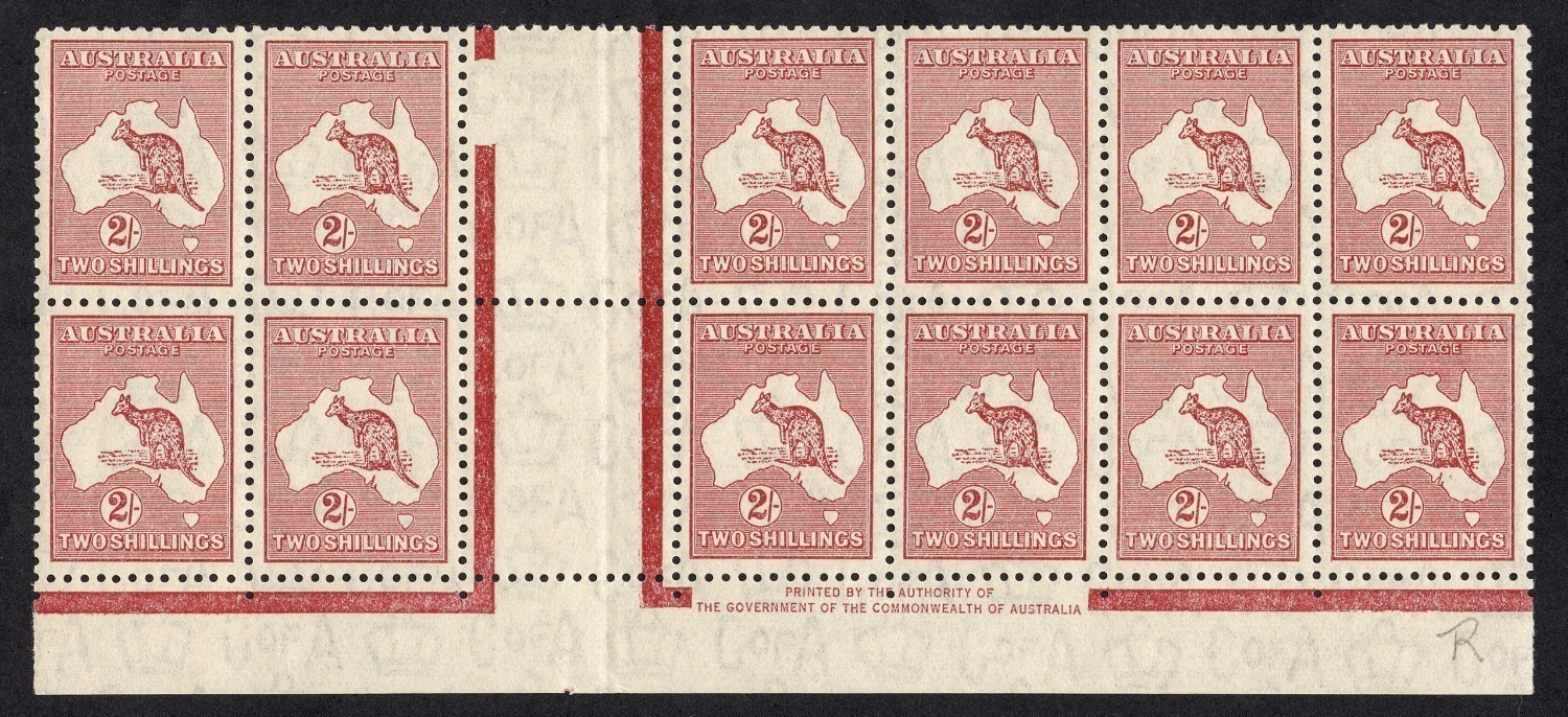 2/- Maroon (SG.212) interpanneau Authority Imprint blk.4+14mm gutter+8, MUH. (12). BW:41zb. (Image 1)